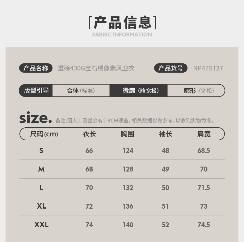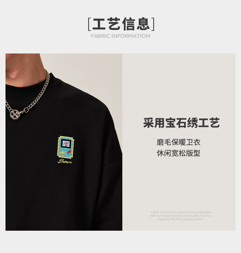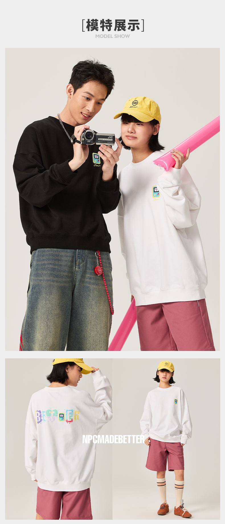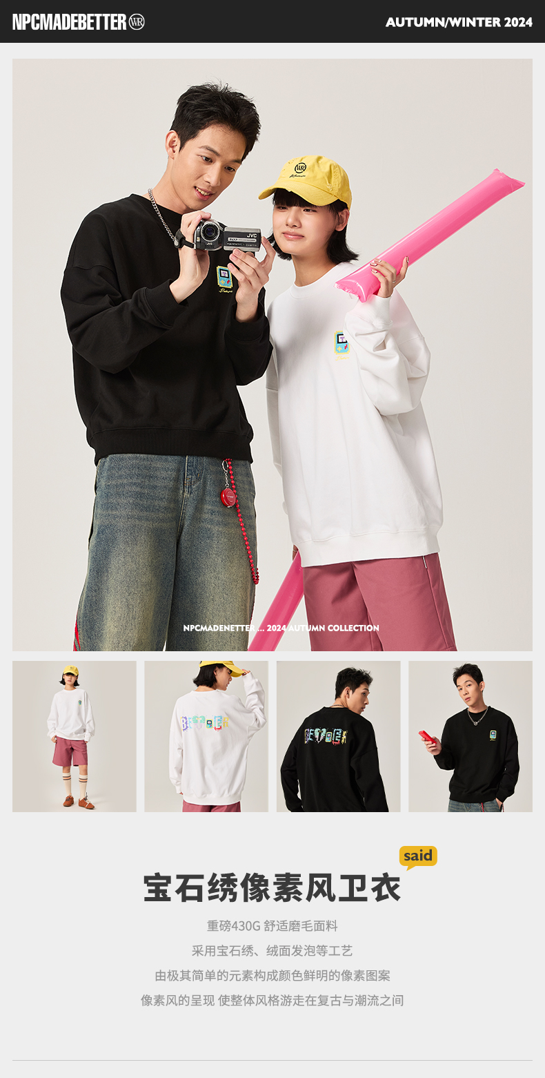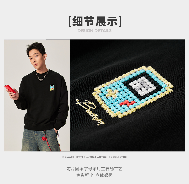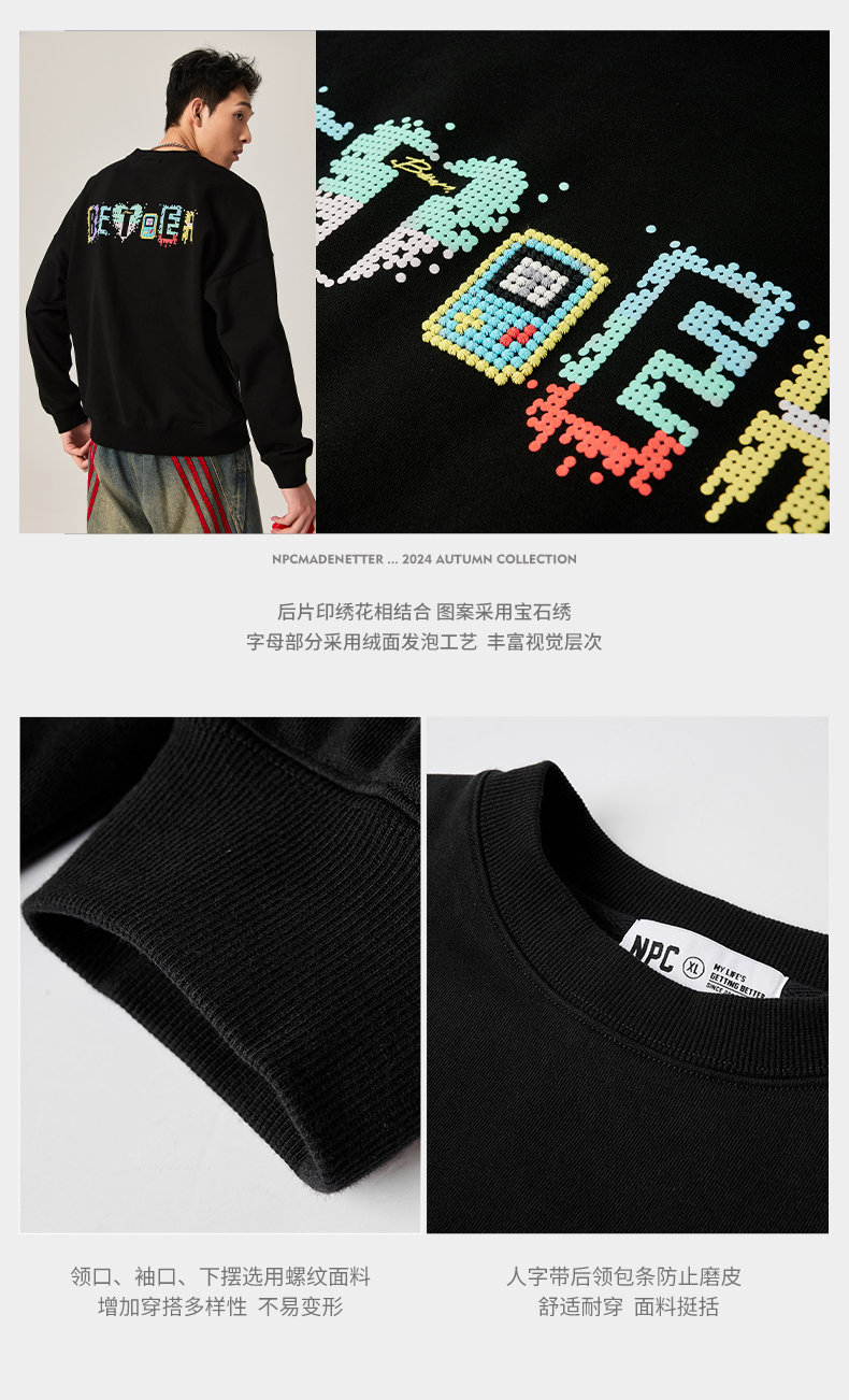 NPC潮牌重磅430G字母撞色宝石绣像素风卫衣男休闲落肩NP47ST27