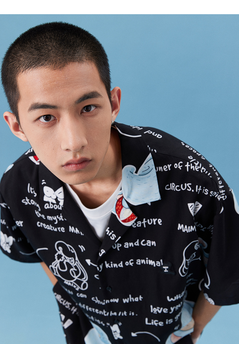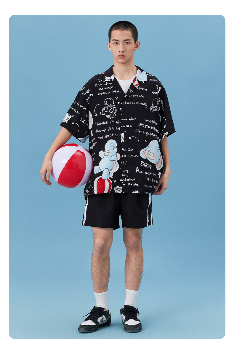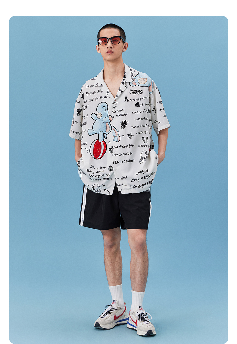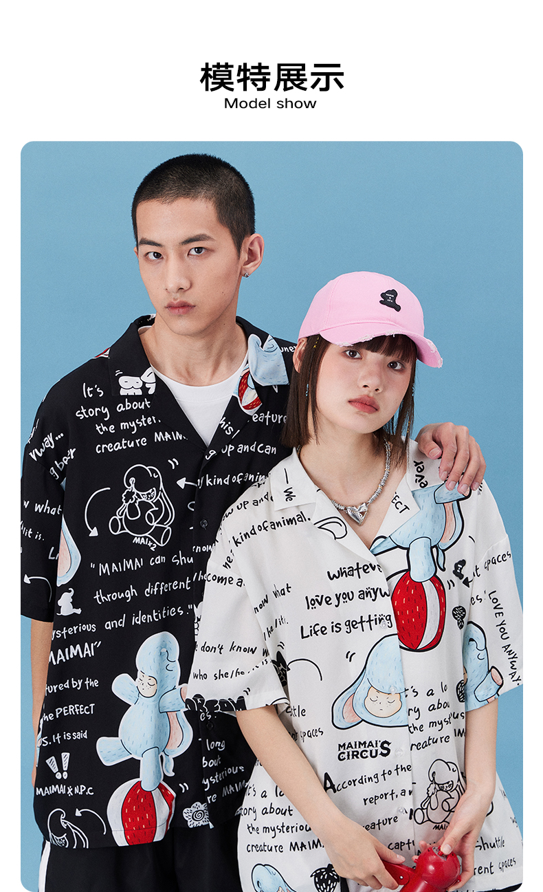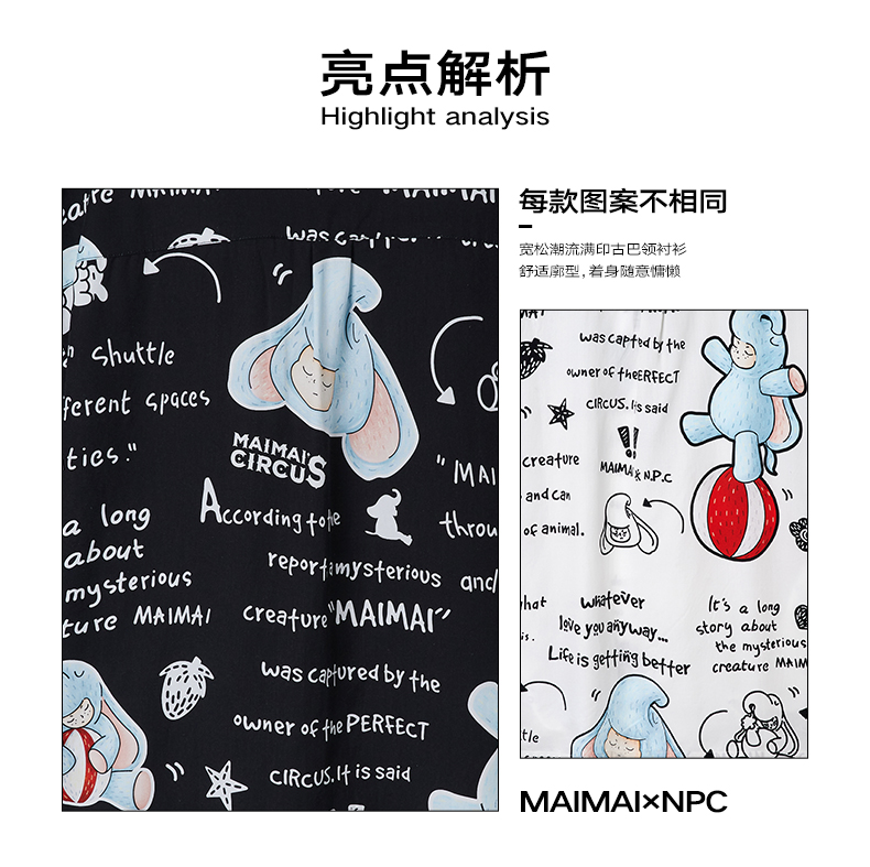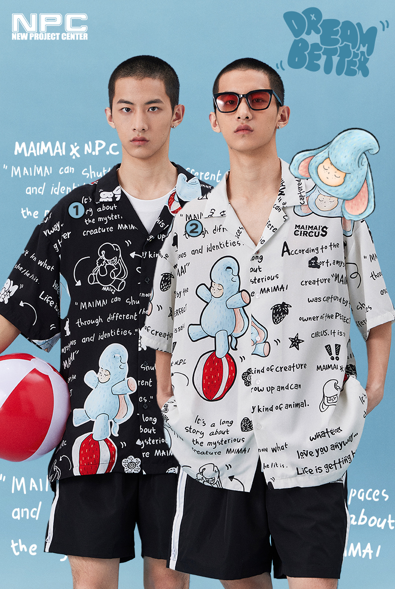 NPC潮牌&MAIMAI联名系列天丝满印衬衫宽松夏季情侣装NP34SH01