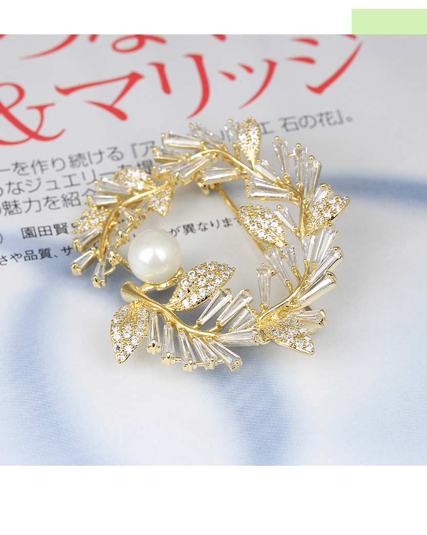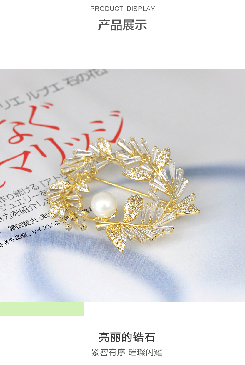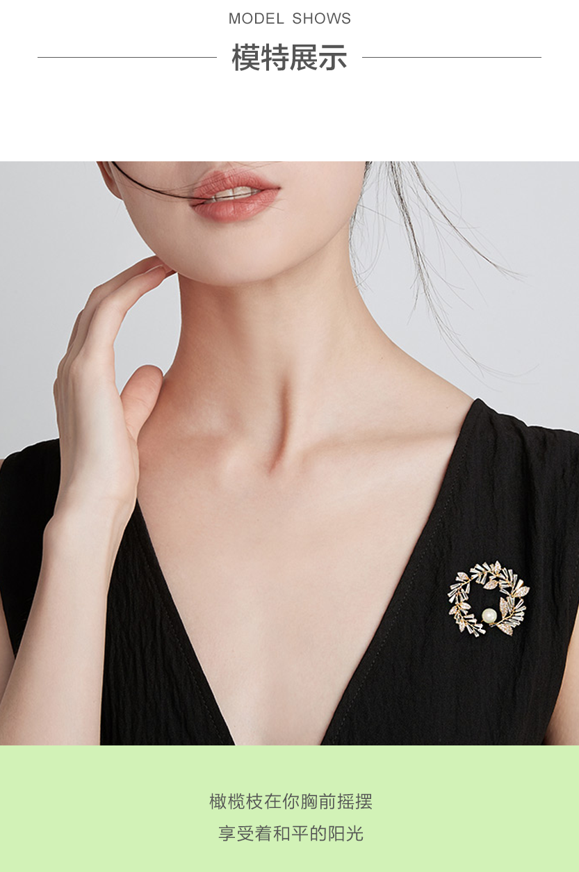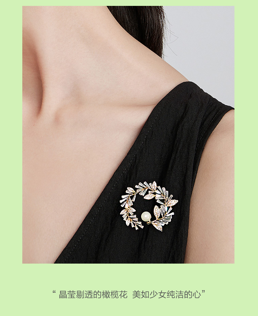 圆形橄榄枝珍珠合金胸针