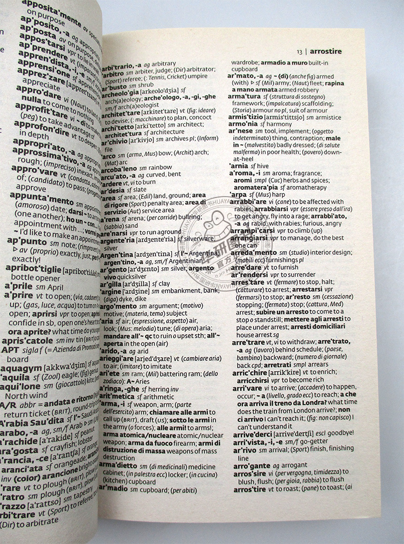 Collins Italian Dictionary《柯林斯意大利语字典》是著名语言学习出版社柯林斯推出的简明英语-意大利语双语字典。该字典体积小巧,方便随身携带,随时使用,适合各阶段意大利语专业学习者、意大利语作为第二外语学习者及意大利语工作者使用。 推荐理由:1.分为英意和意英两部分,编排得当,方便使用; 2.收录四万多词条,约七万条翻译; 3.包含常用短语和习语; 4.提供主要不规则动词形式; 5.附常见缩写词、首字母缩写词和地理名称; 6.英语和意大利语词条都提供国际音标。 ·Up-to-date coverage of today’s language ·Offers over 40,000 entries and 70,000 translations ·Easy-to-use format ·Contains commonly used phrases and idioms ·Main irregular verb forms given ·Includes most common abbreviations, acronyms, and geographic names ·Pronunciations for English and Italian shown in the International Phonetic Alphabet