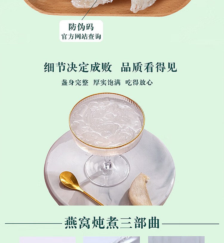 【原 料】 白燕窝(燕盏)原产国:印度尼西亚