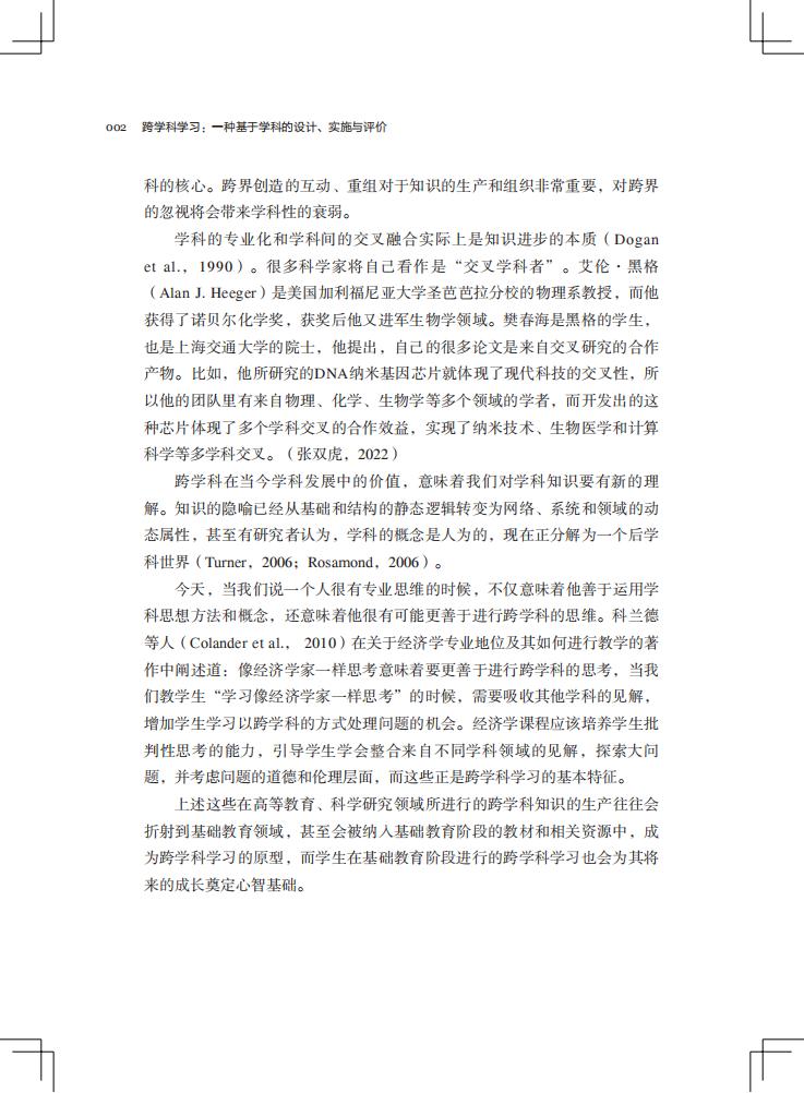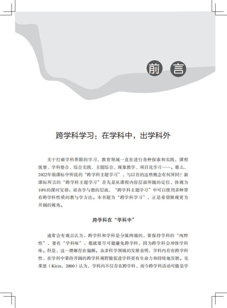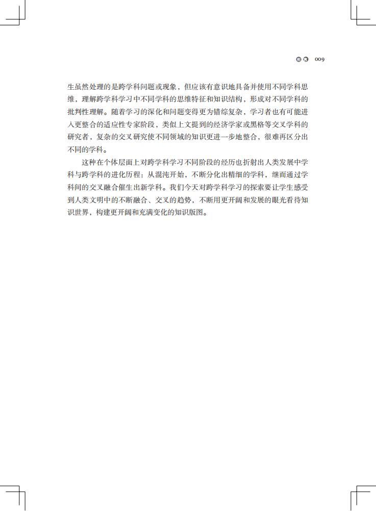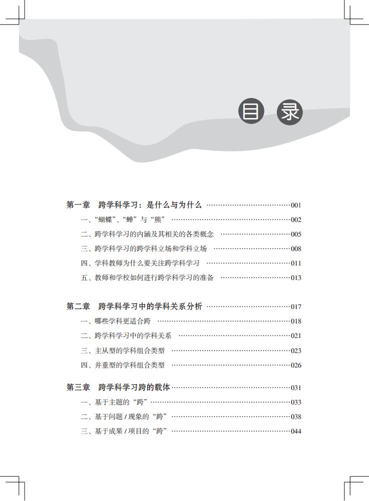 本书从学科视角切入,探讨了跨学科学习是什么、跨学科学习中的学科关系分析、不同学科如何跨的载体、跨学科的设计框架及实施,从学科的角度提出系统的跨学科学习设计方法,对澄清当下的众多概念有所帮助,具有理论的创新性和针对实践的可行性,特别是将跨学科作业、跨学科评价融入其中做了系统的分析,突破当下的难点。同时,提供了经过实践迭代的有价值的案例,覆盖语文、数学、英语、科学、美术等主要学科,为新 课 标的落地提出了一条可行的路径。