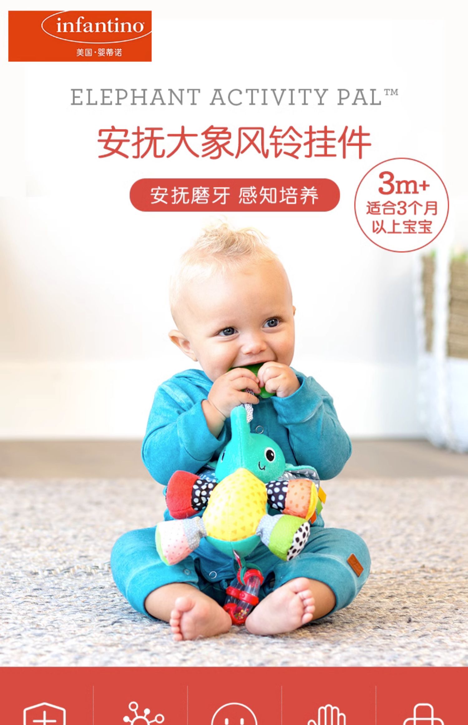 美国 婴蒂诺(infantino)宝宝大象风铃挂件