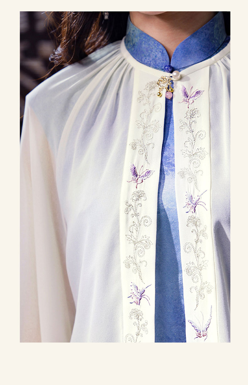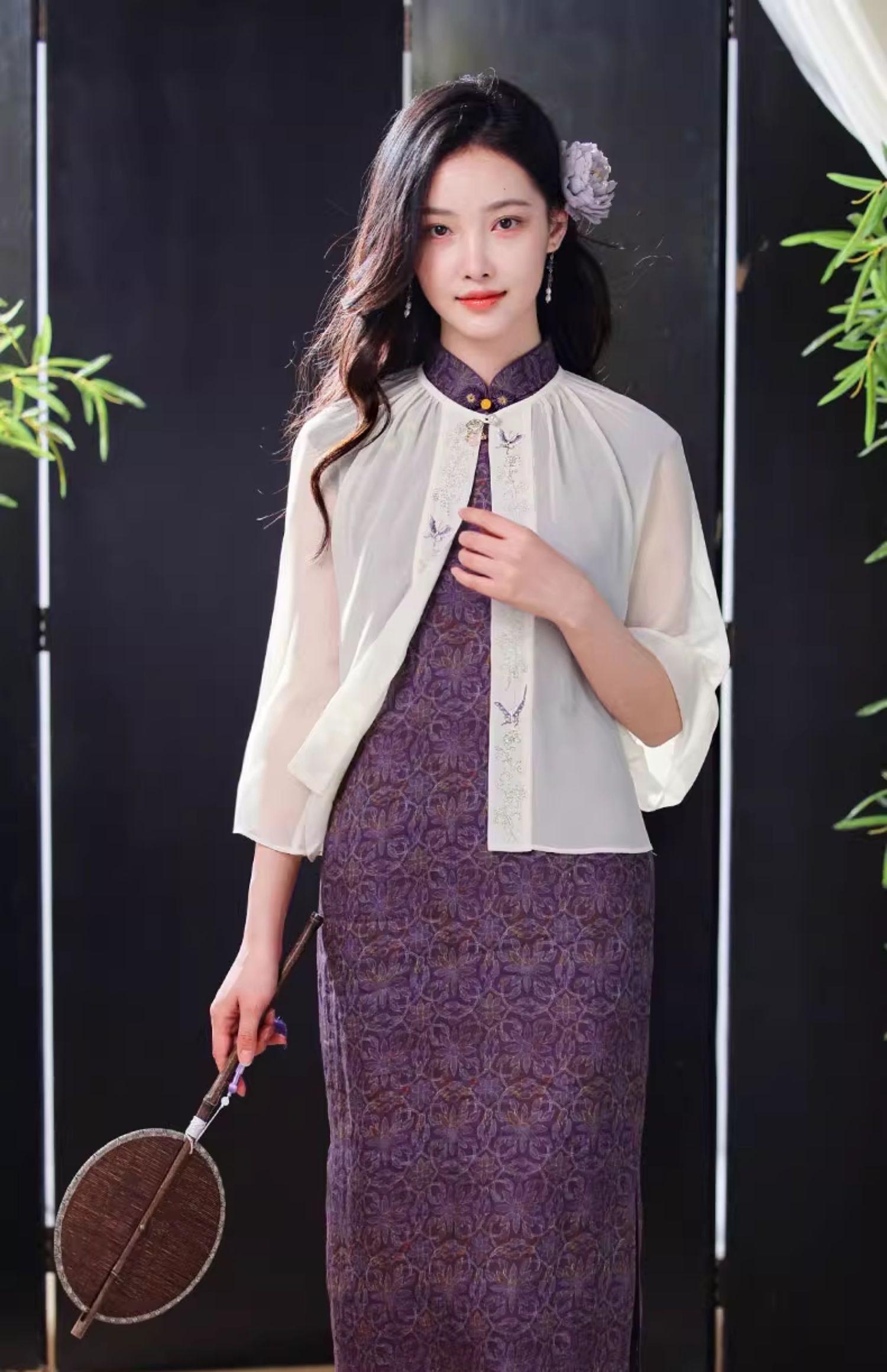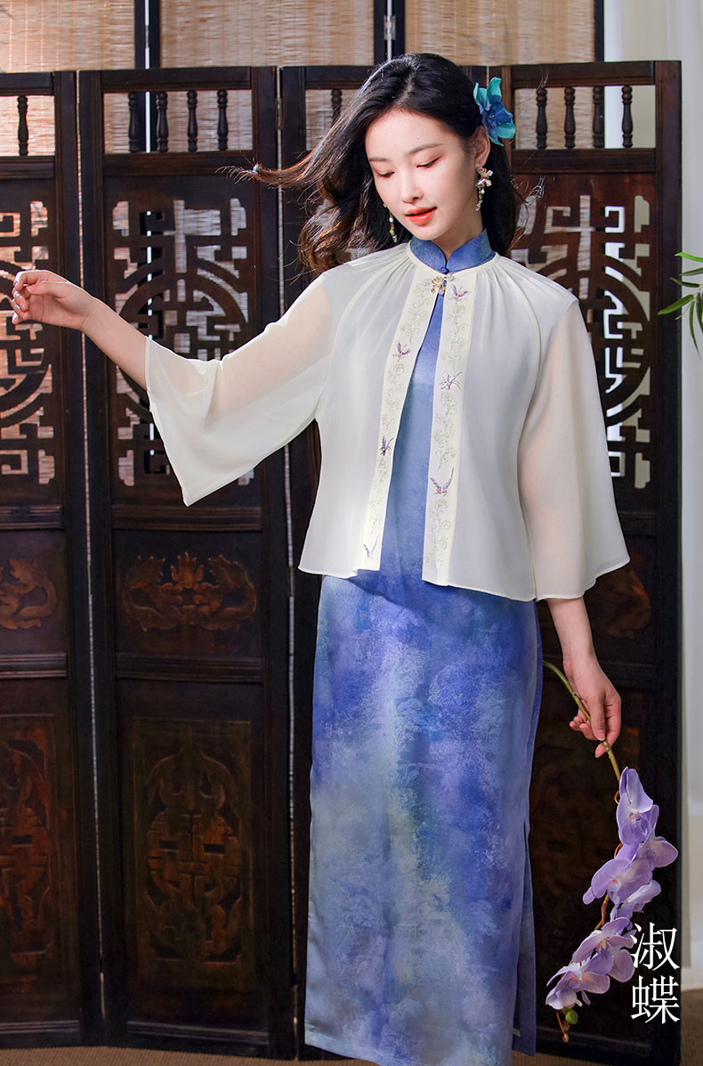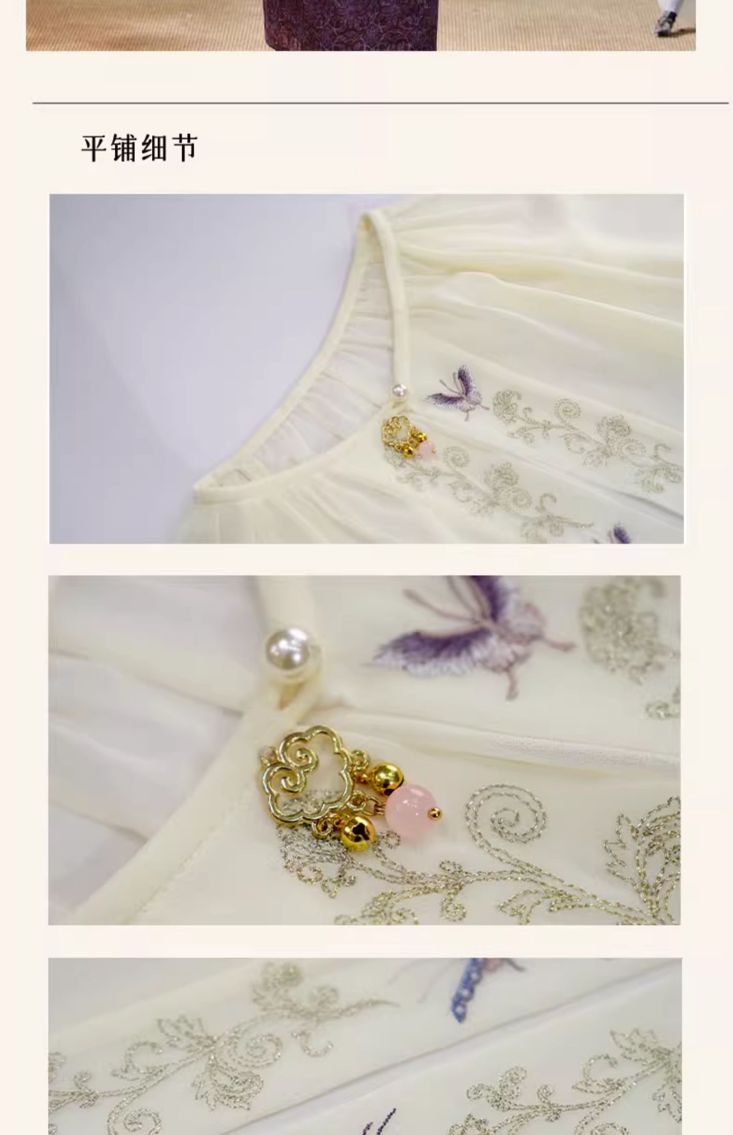 逸红颜 淑蝶 2025夏新品仿真丝飘逸仙美蝴蝶卷草纹刺绣旗袍开衫女