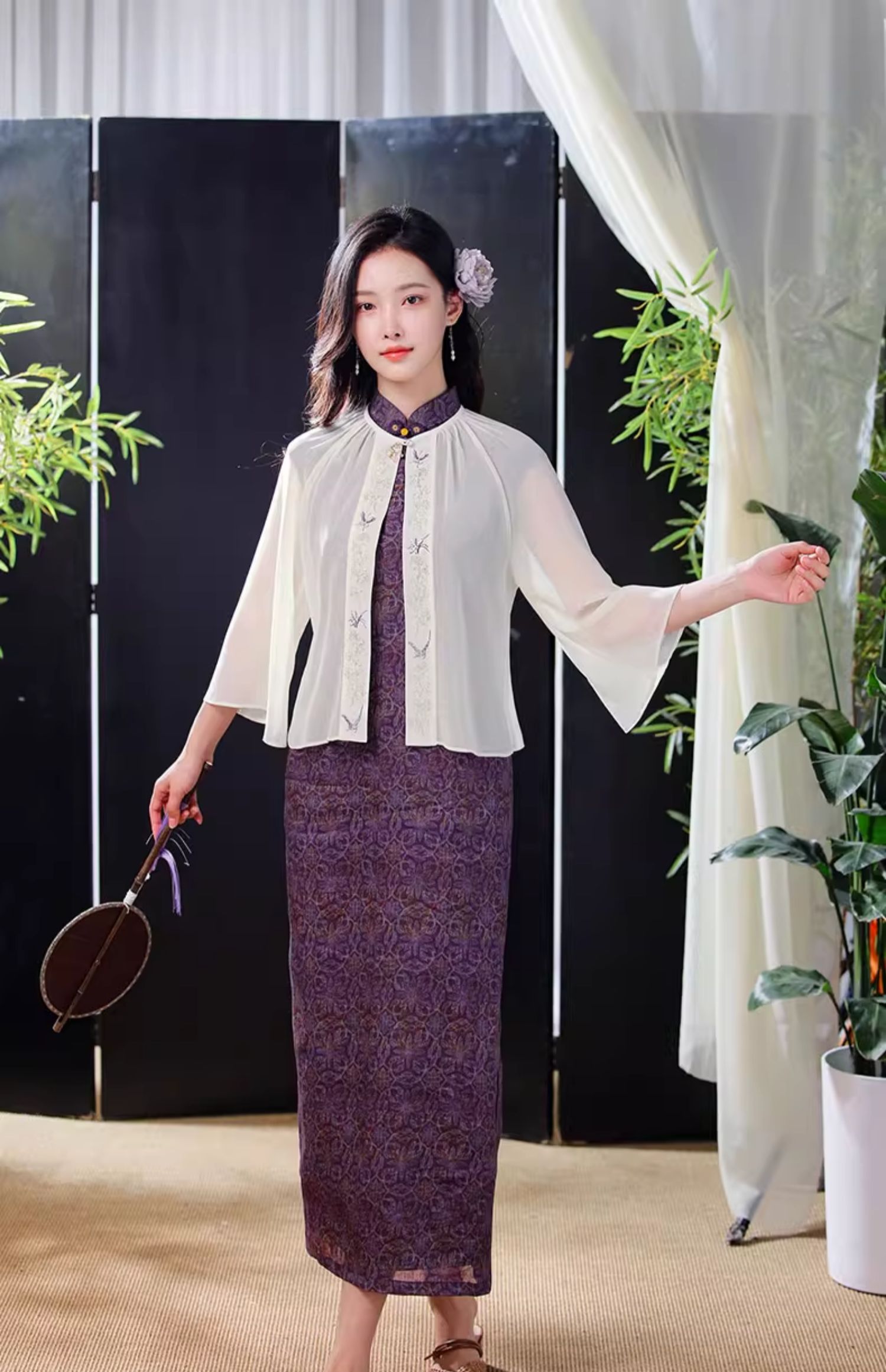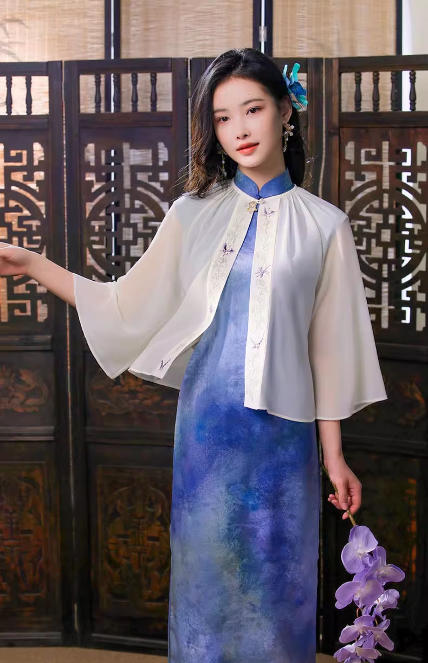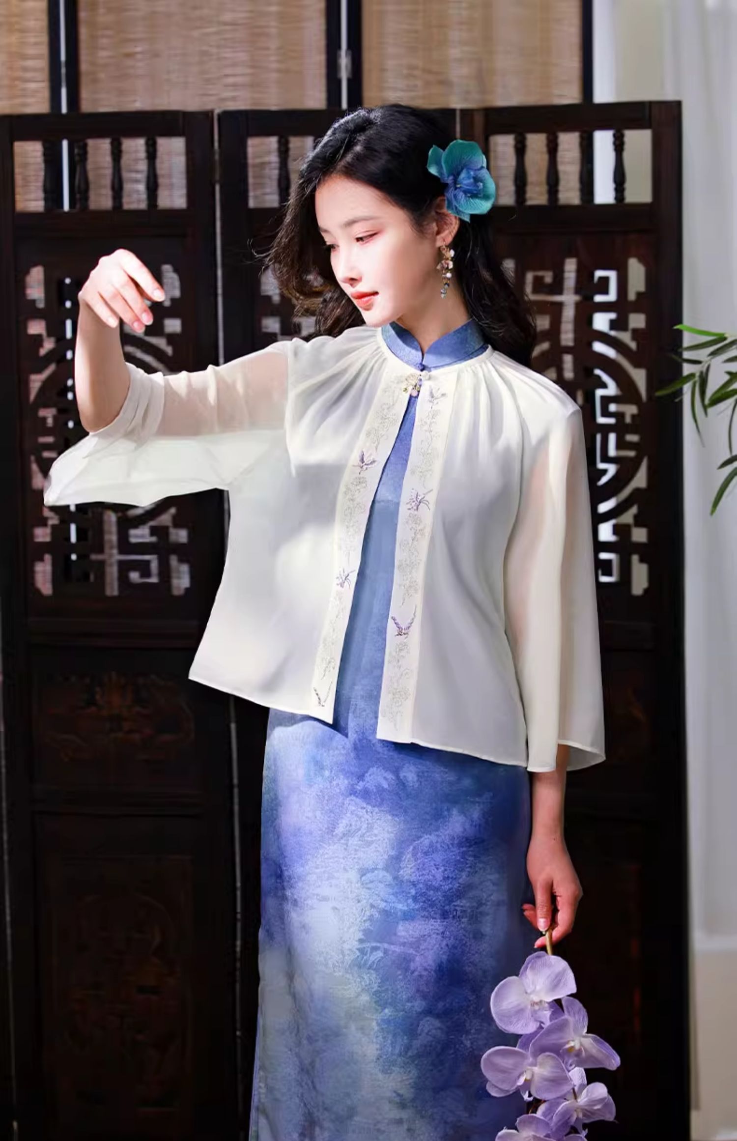 逸红颜 淑蝶 2025夏新品仿真丝飘逸仙美蝴蝶卷草纹刺绣旗袍开衫女