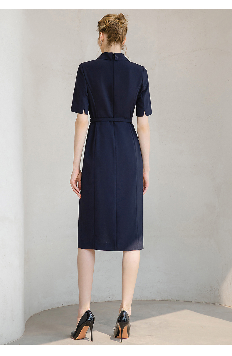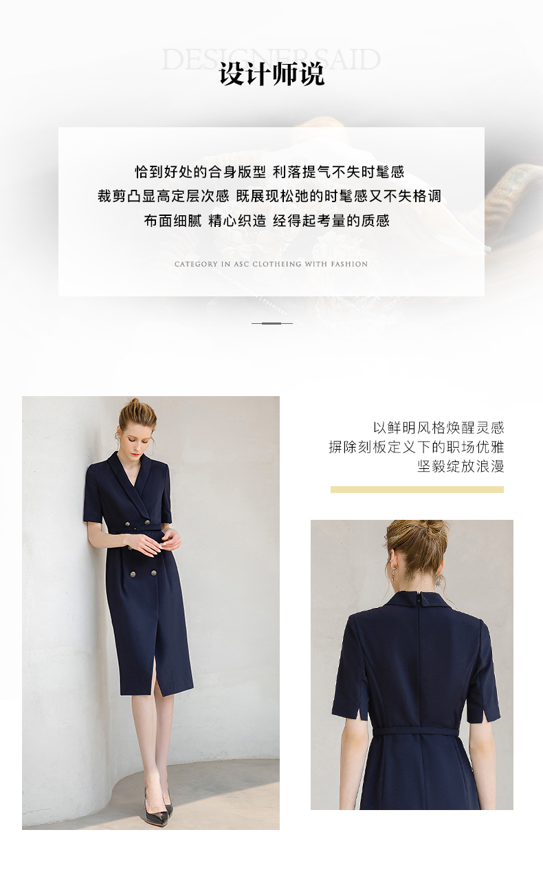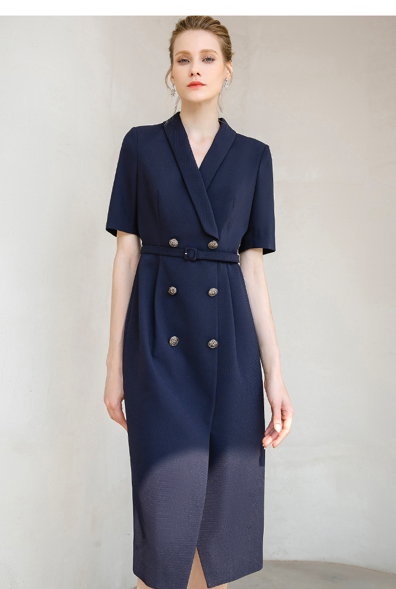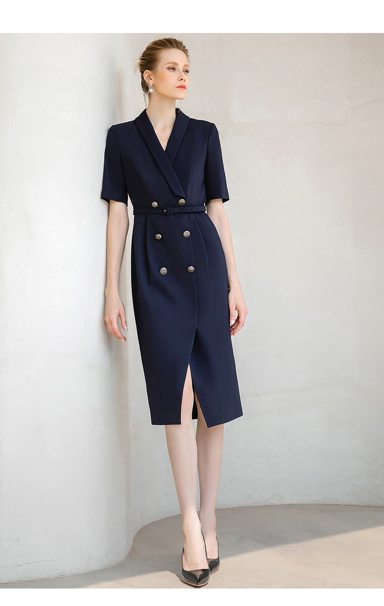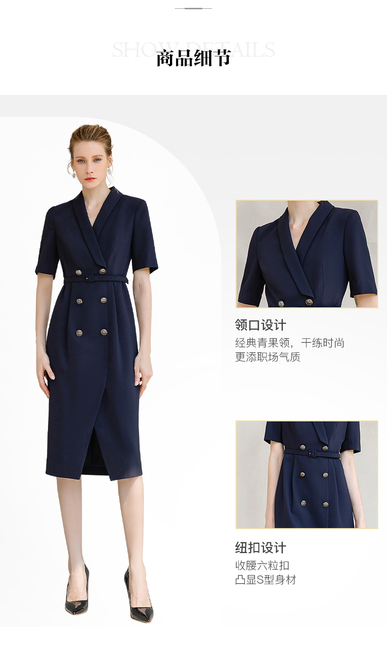 夏季高端时尚OL通勤高腰双排扣杏色连衣裙女主持人职业装西装裙