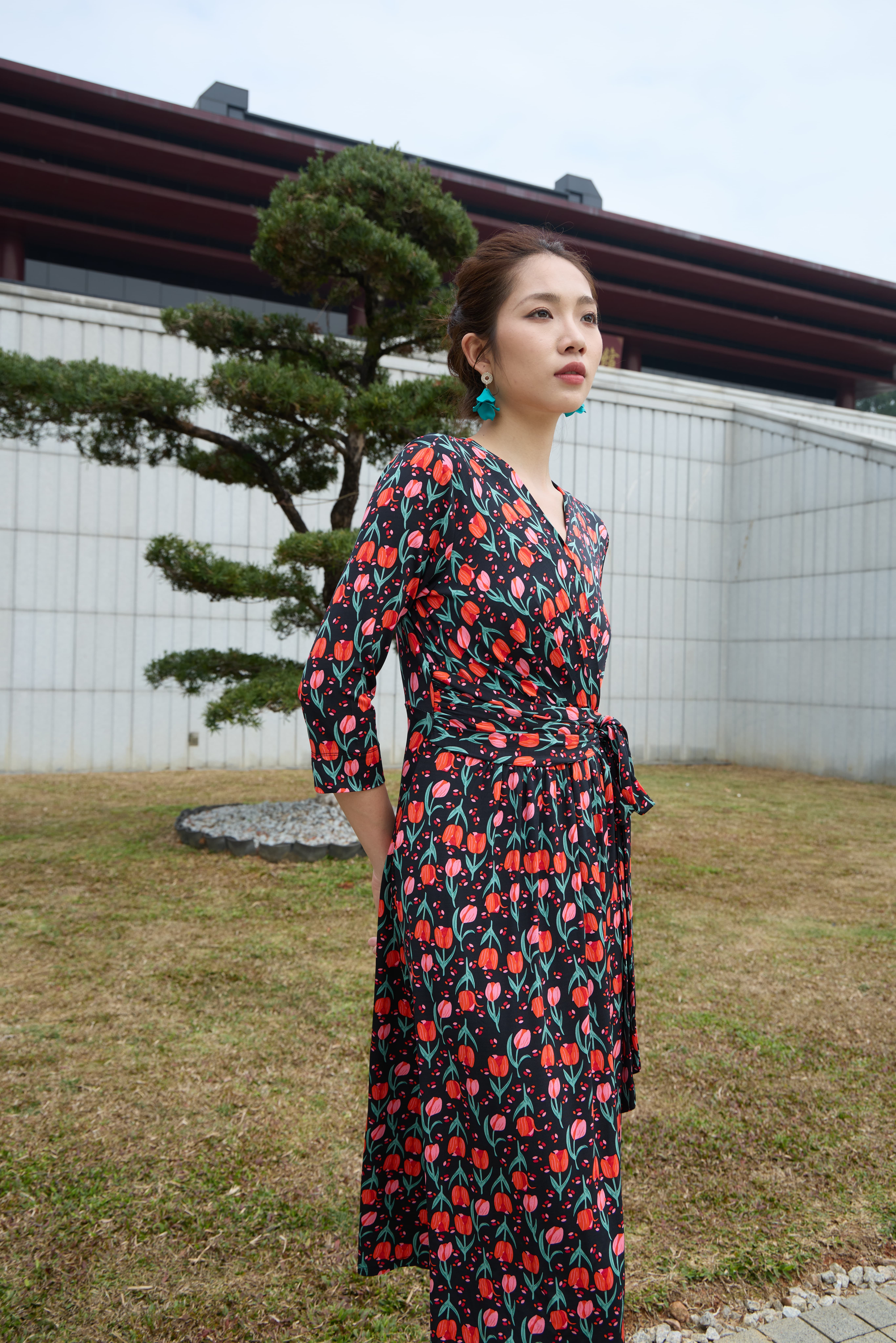 红粉郁金香在垂顺韩国丝上舒展芳华。
