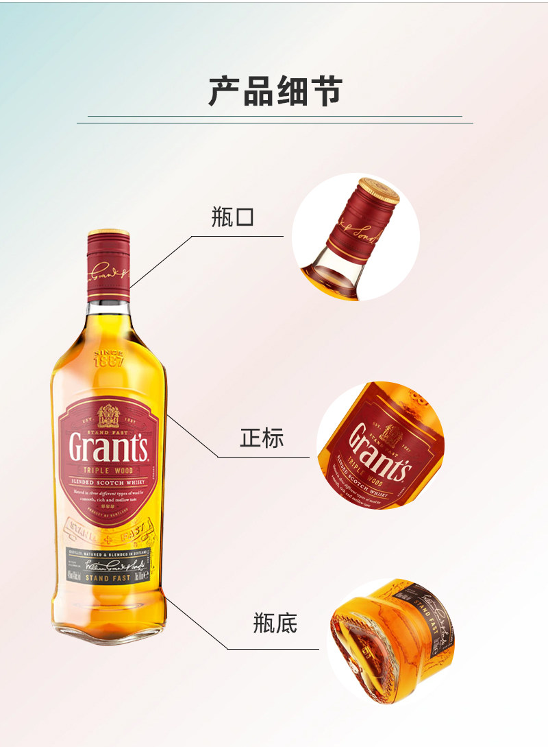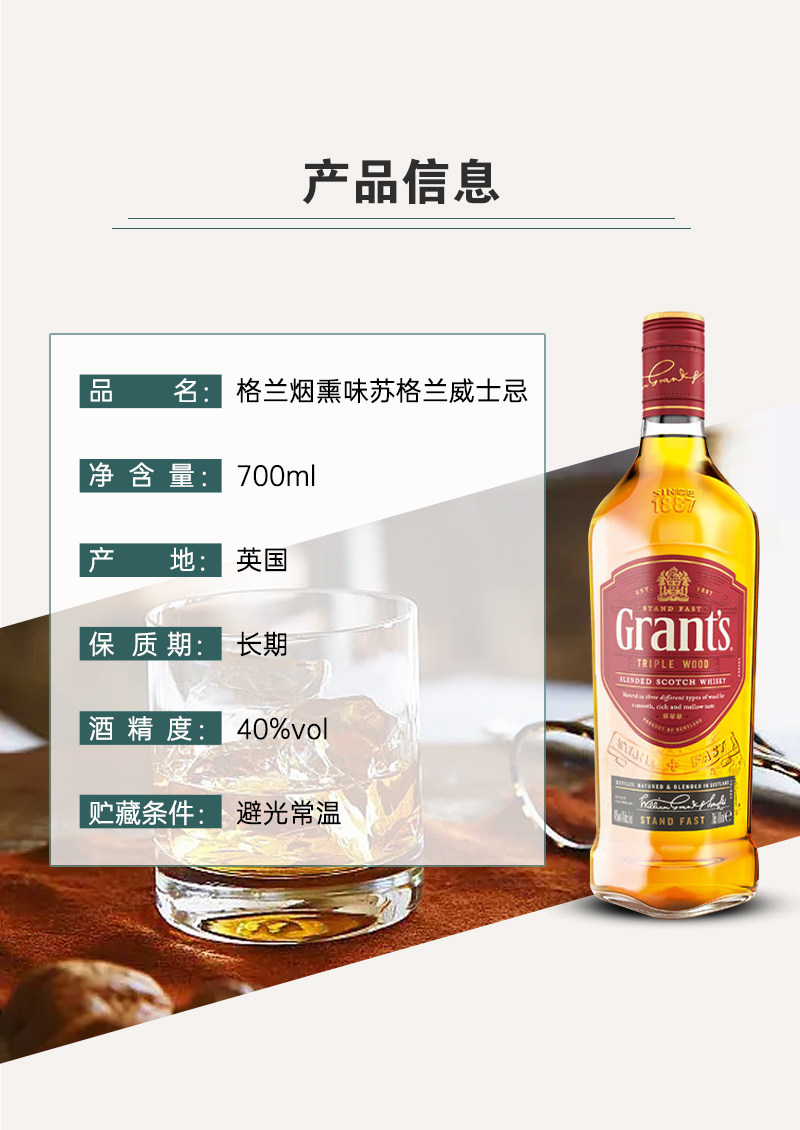 格兰苏格兰威士忌英国进口Grants洋酒700ml/瓶