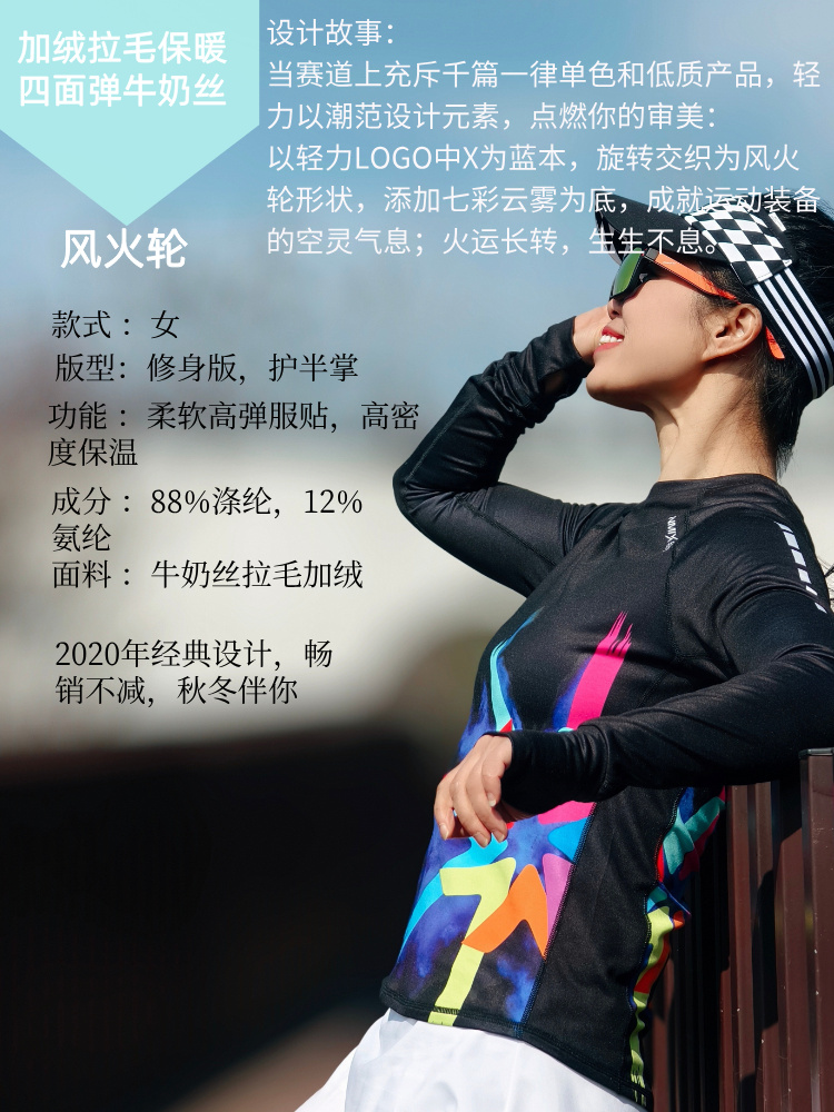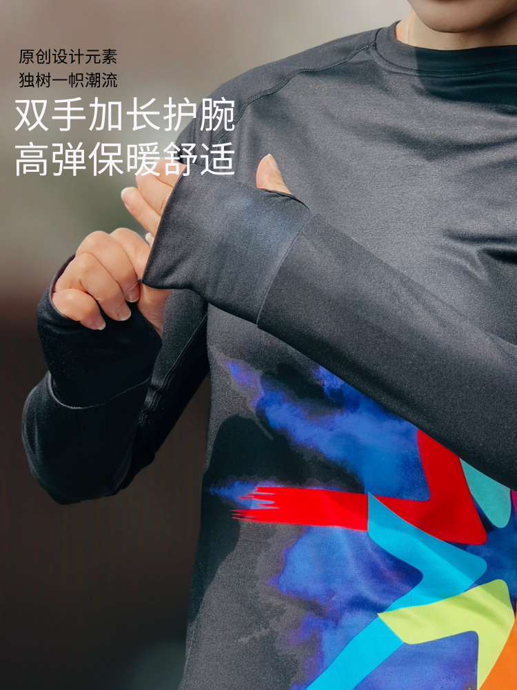 风火轮加绒黑透气高弹加长护腕修身跑步运动长袖女