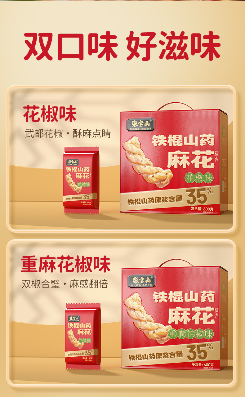 【新品花椒味-供货】张宝山铁棍山药麻花 35%焦作怀山药零食特产 椒香酥脆 营养休闲小零食600g