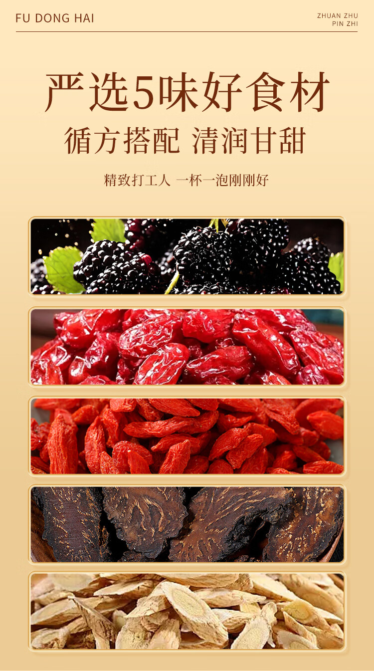 福东海 山茱萸桑葚枸杞茶180克(12袋) 独立袋装 沙苑子桑葚枸杞茶 泡红枸杞山茱萸黄芪黄精茶男性滋补元气