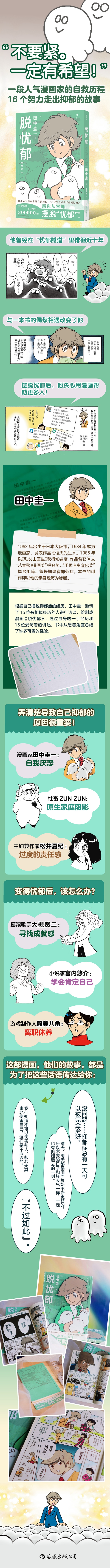 如果忧郁能被描绘,它会是什么形象?是讨人厌的、黏糊糊的鼻涕虫,还是望不到尽头的漆黑隧道?根据自己摆脱抑郁症的经历,漫画家田中圭一和助手金子一同邀请有相似经历的人进行访谈。这些人拥有不同的成长轨迹、职业经历,却拥有极为相似的痛苦(童年创伤、人际交往压力、缺乏自信等)和抑郁症经历,最终也都与自己的抑郁症和解,并悦纳自己。此外,书中还有与抑郁症相关的专业科普知识,以及精神科医生、作家悠木优给读者的建议与鼓励。
