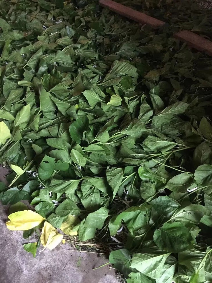 采摘新鲜桑叶喂食