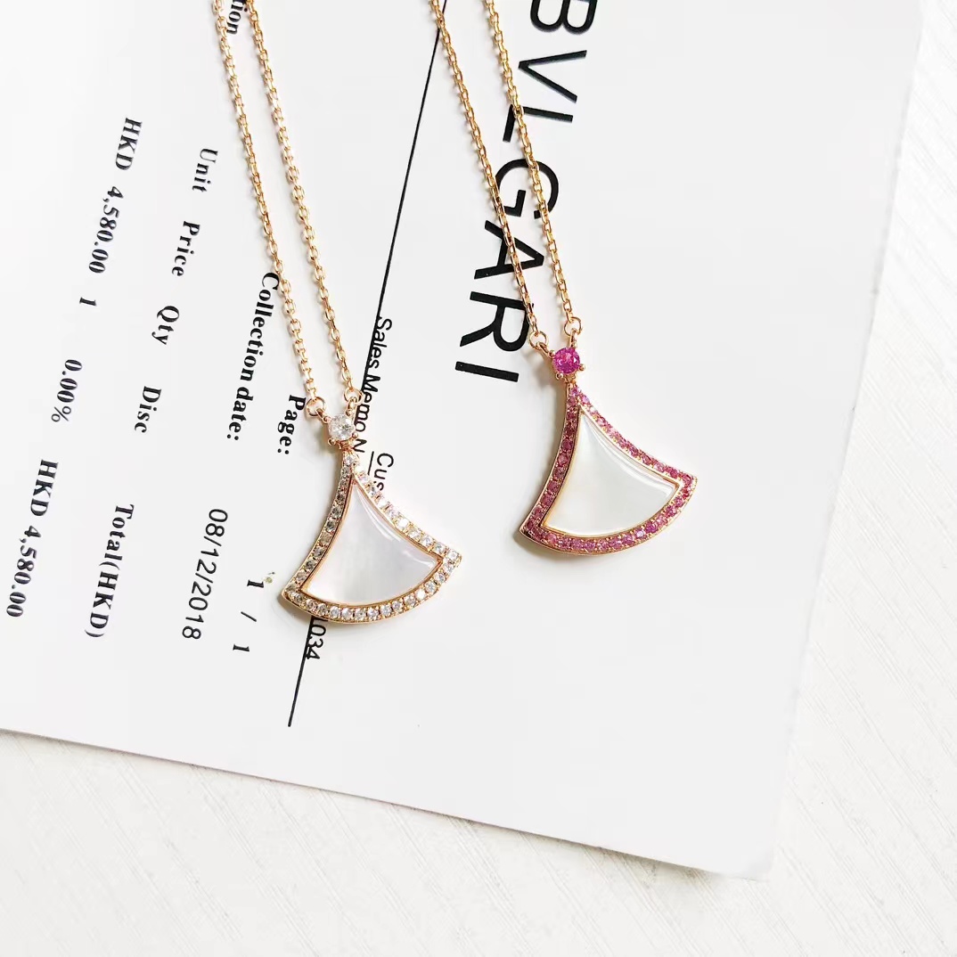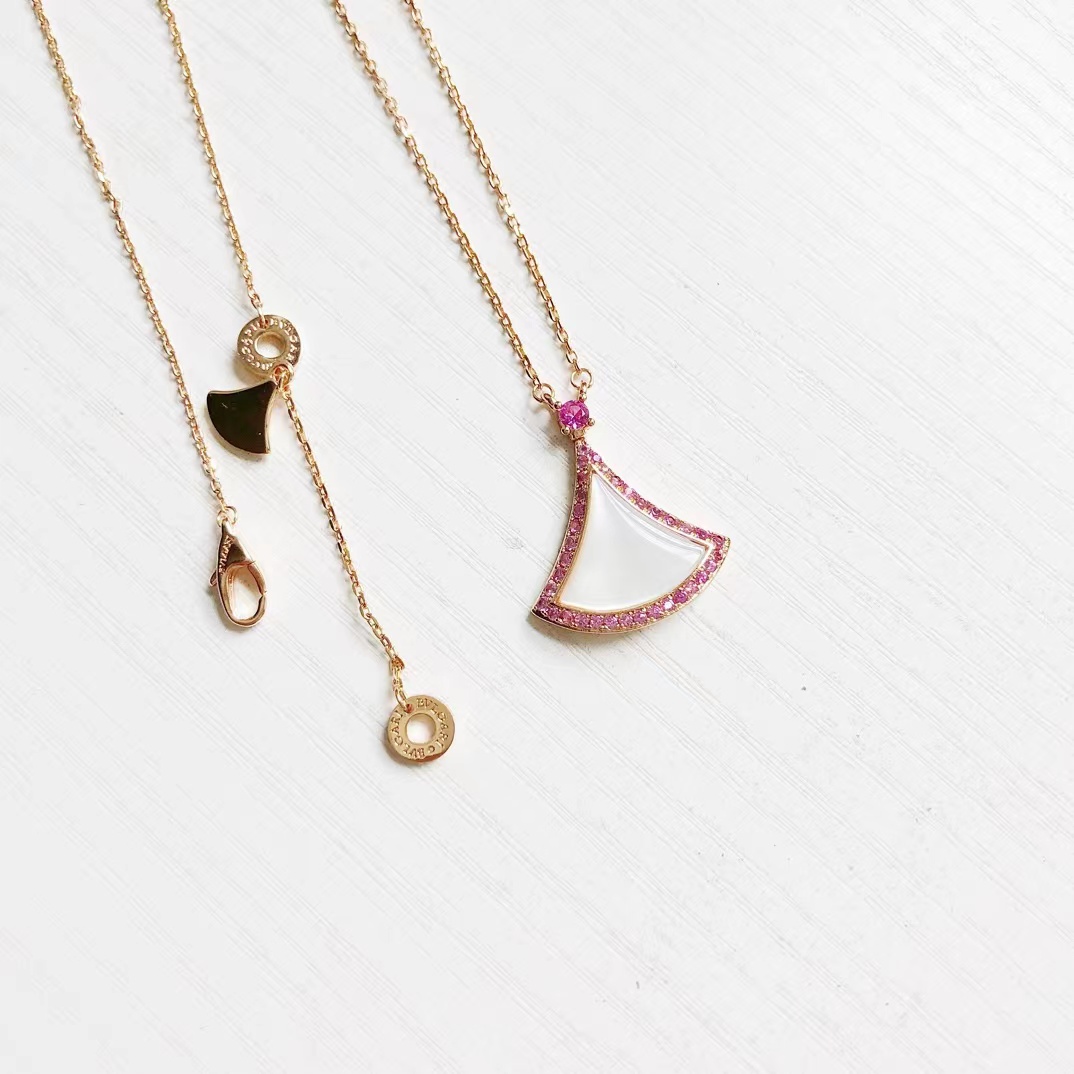 新款白贝母裙子项链DIVAS' DREAM系列项链 精妙演绎意大利风情 以独特的罗马精神向魅力女性致敬 由女性的优雅气质汲取灵感 以密镶钻石勾勒珍珠母贝扇形轮廓 独树一帜的标志性元素 镶嵌天然珍珠母贝密镶宝石 白贝钻款永恒的精典 羔级设计风格 简约时尚 羔贵的气质 你值得拥有