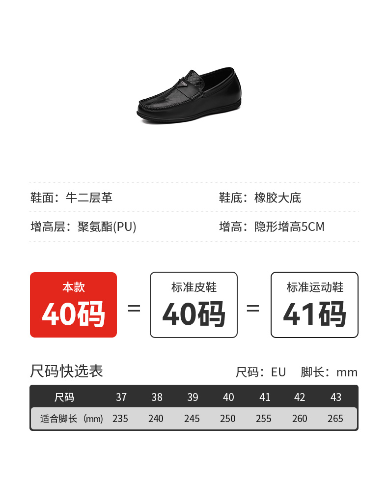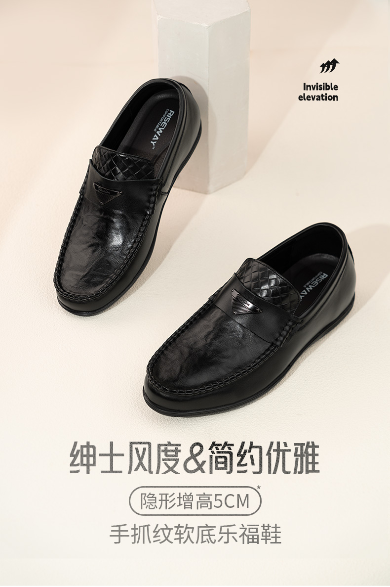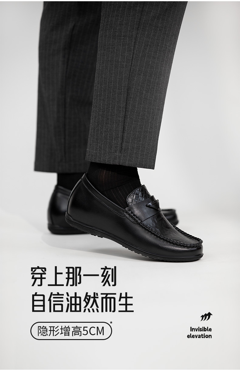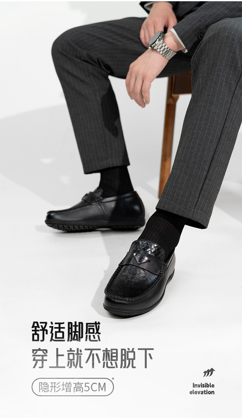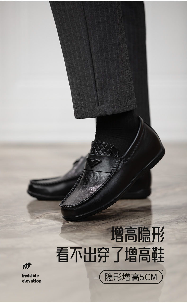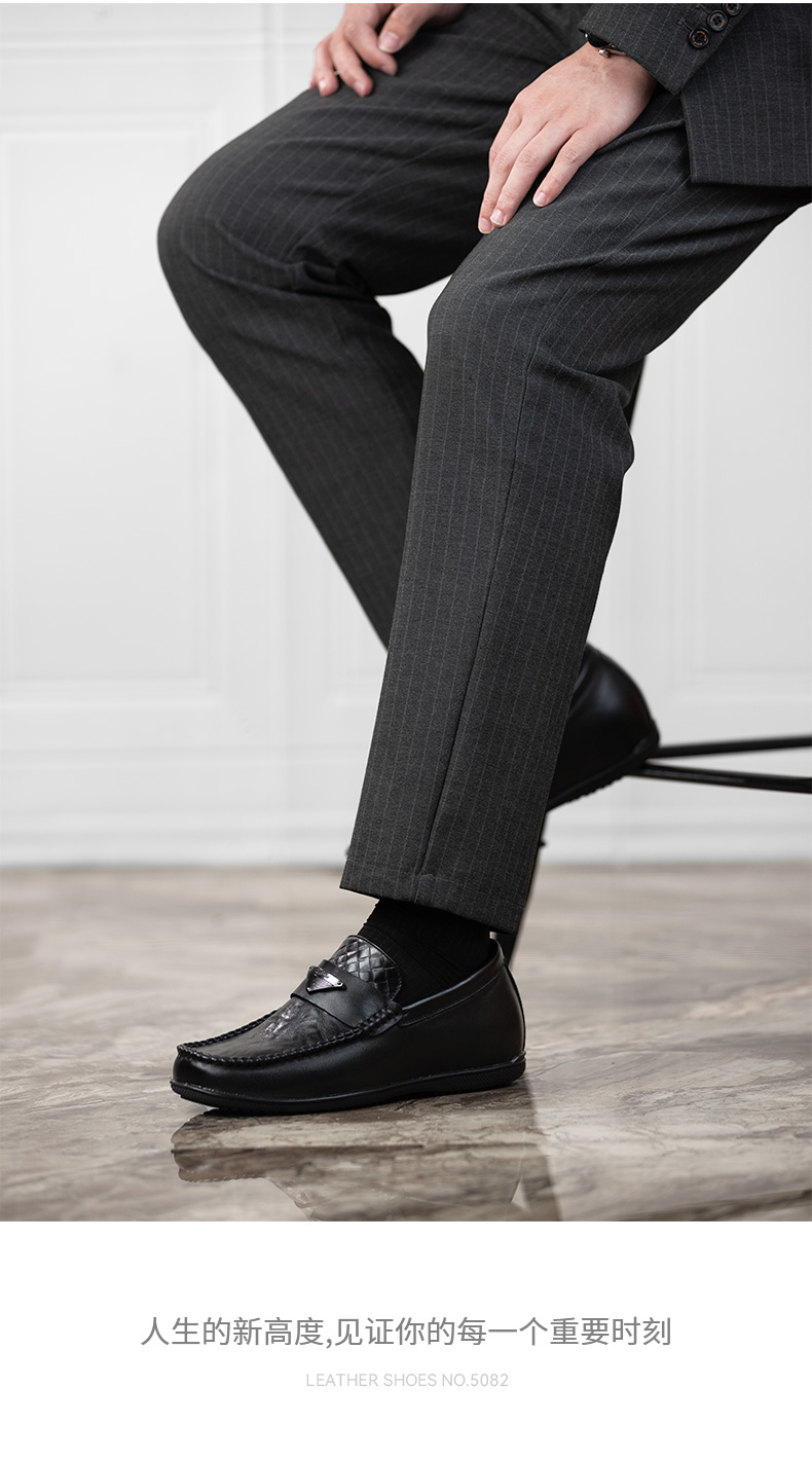 内增高男鞋豆豆鞋休闲皮鞋男隐形增高鞋一脚蹬皮鞋