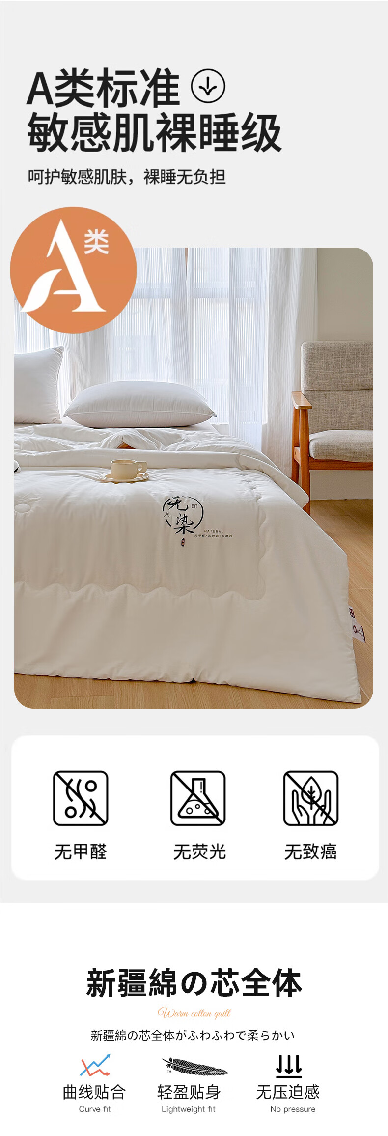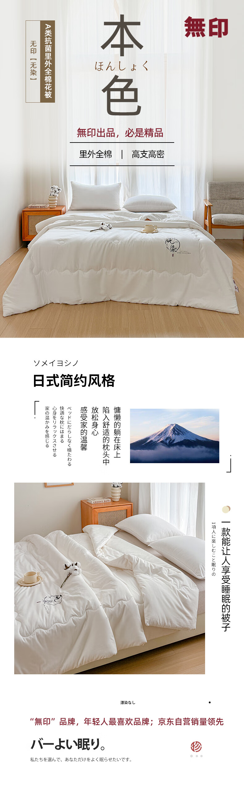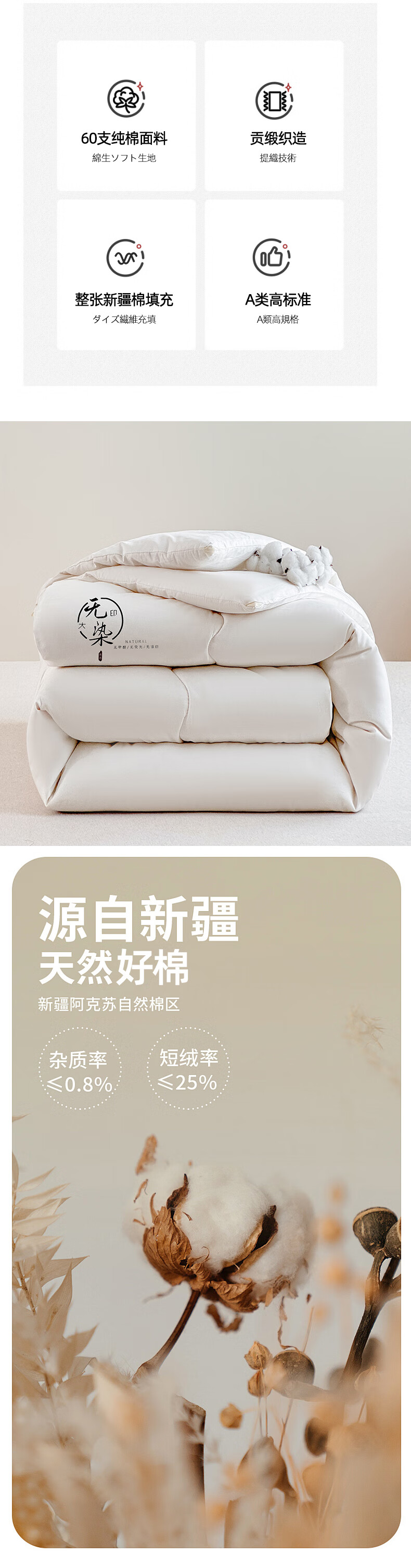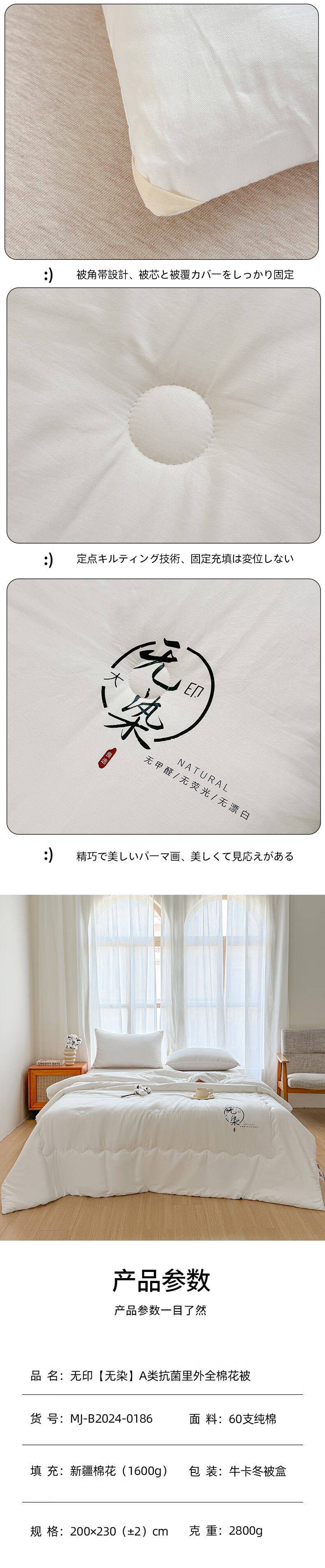 无印良品“无染”A类抗菌里外全棉棉花冬被MJ-B2024-0186