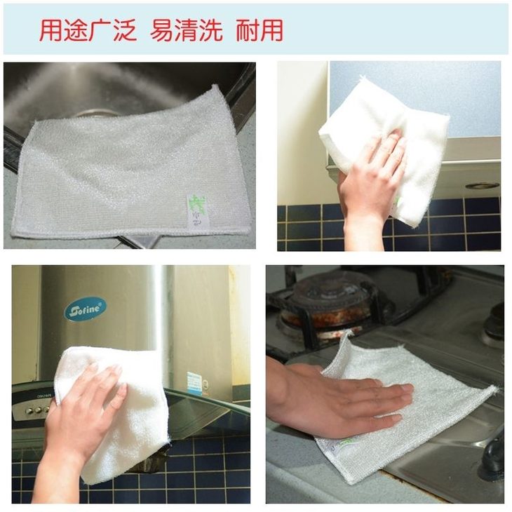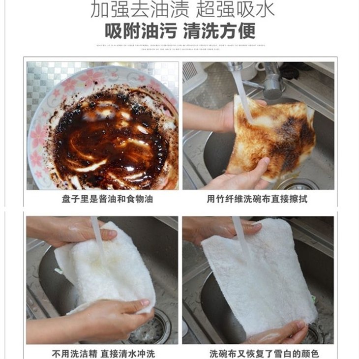 10条装【易清洗竹纤维】厨房不沾油洗碗巾 双层加厚清洁巾。