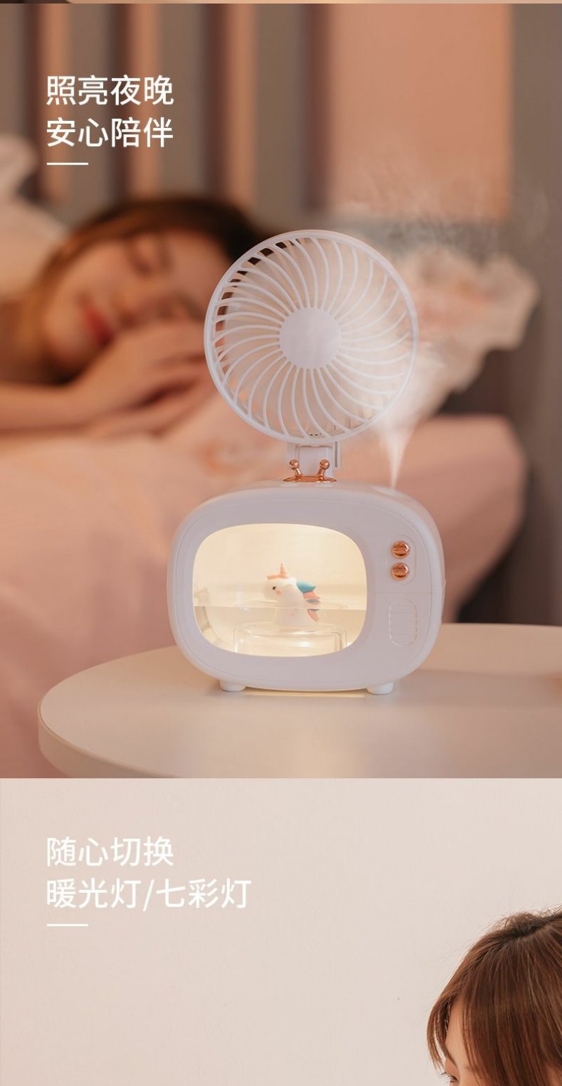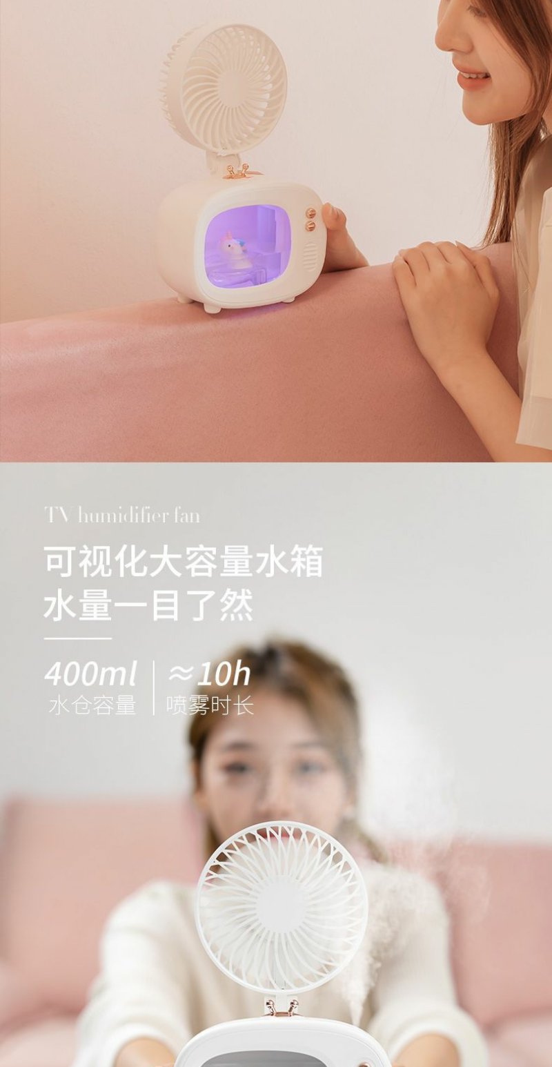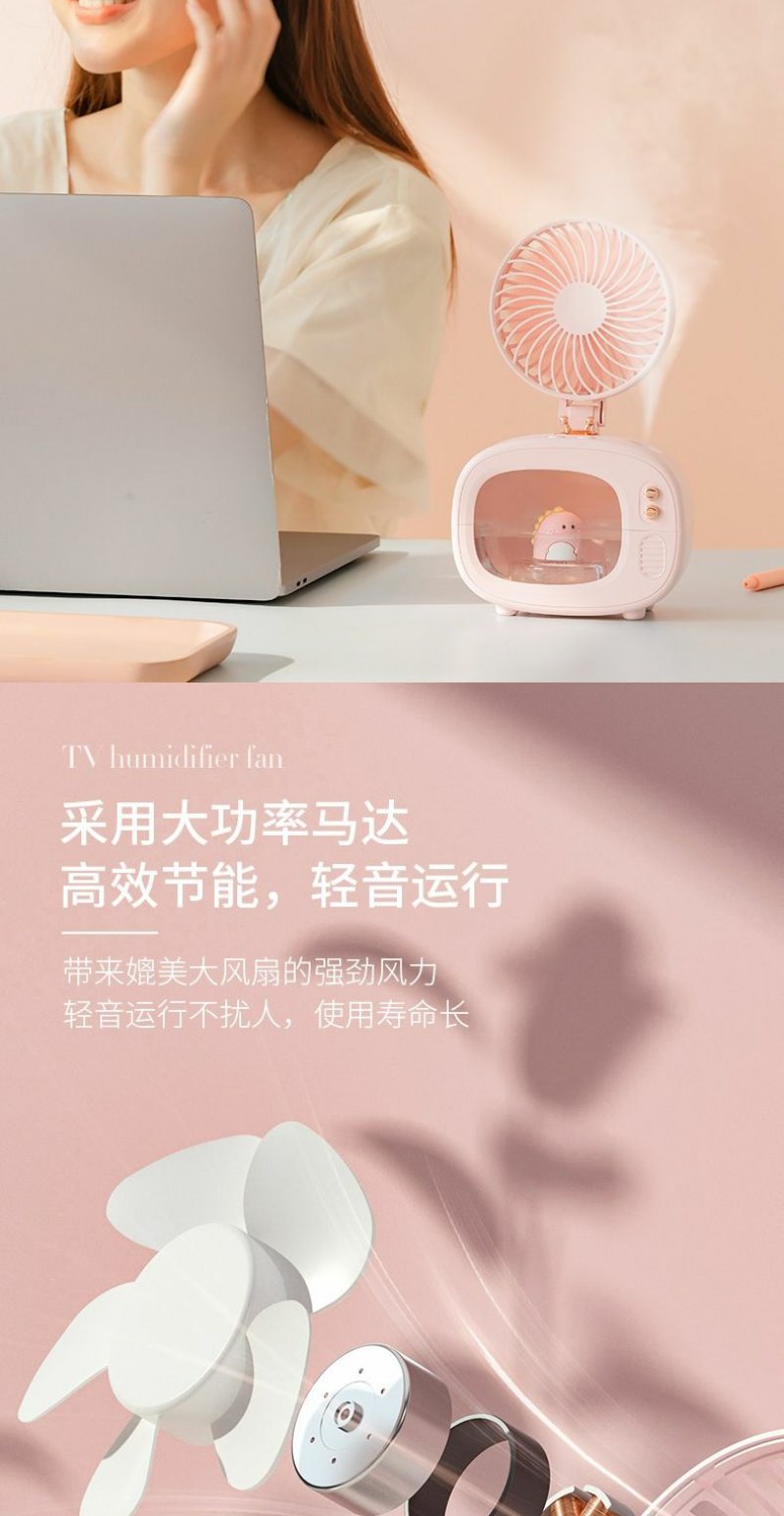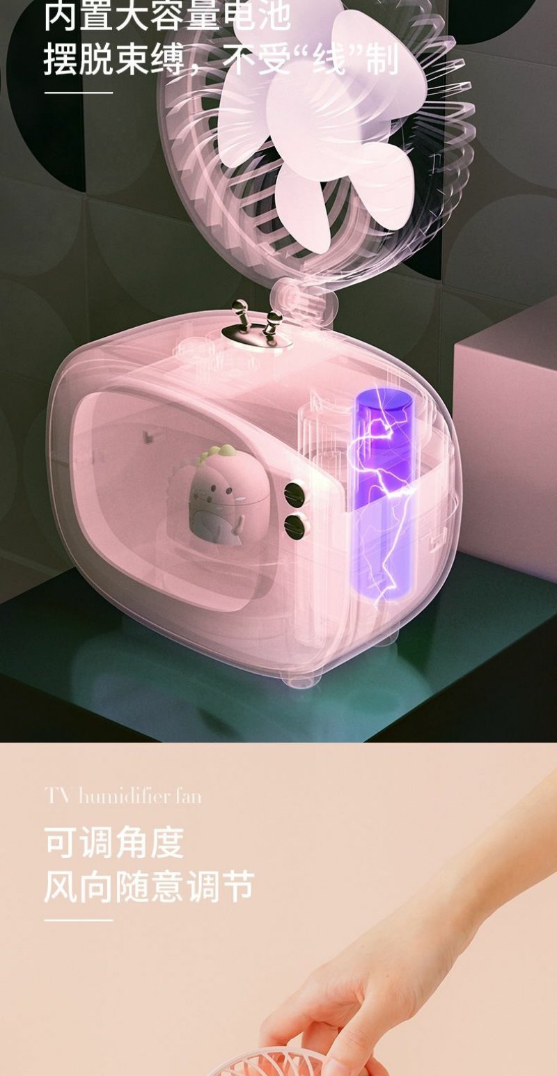 新品TV电视机喷雾香宠风扇加湿制冷usb可充电静音送女友生日礼物,