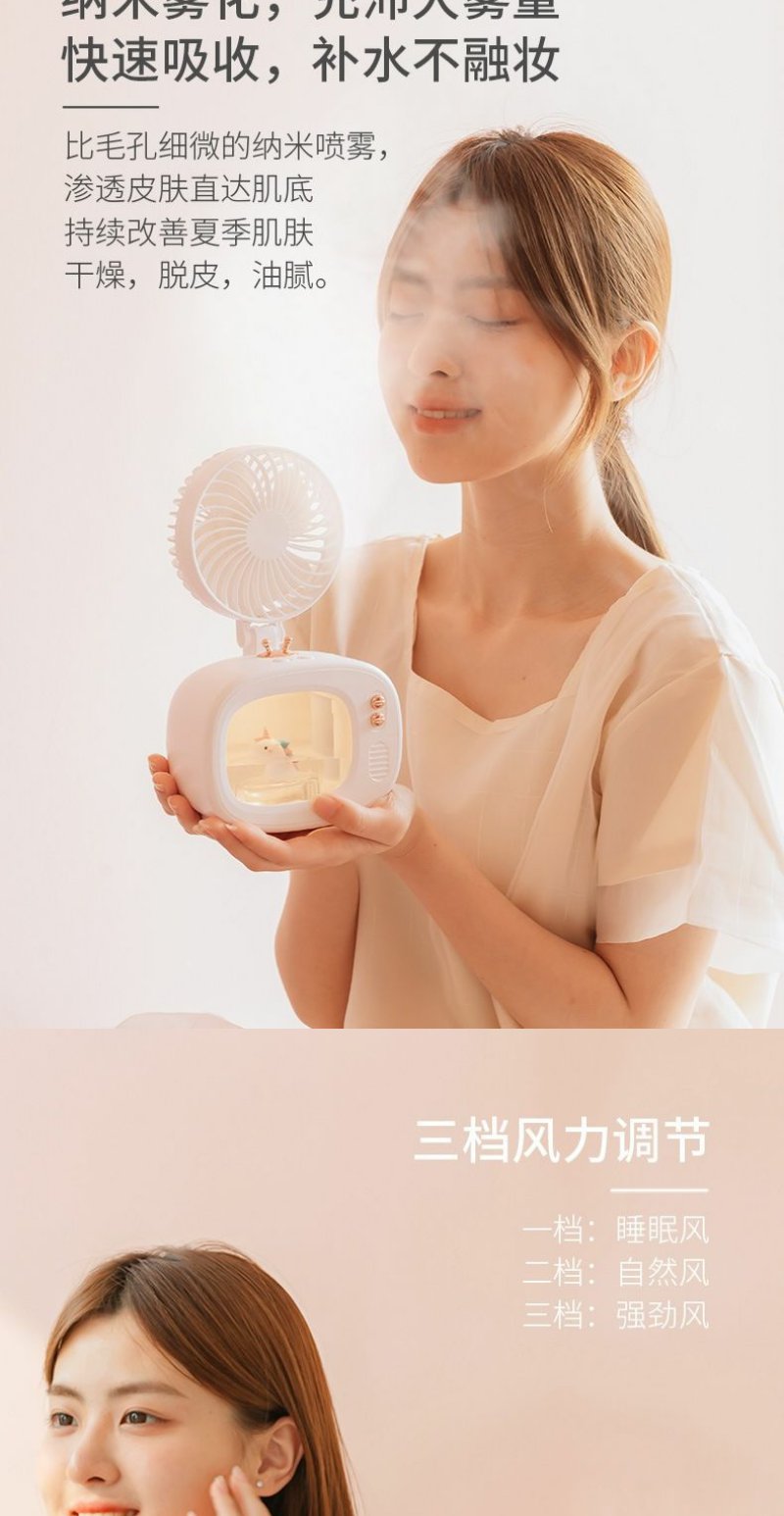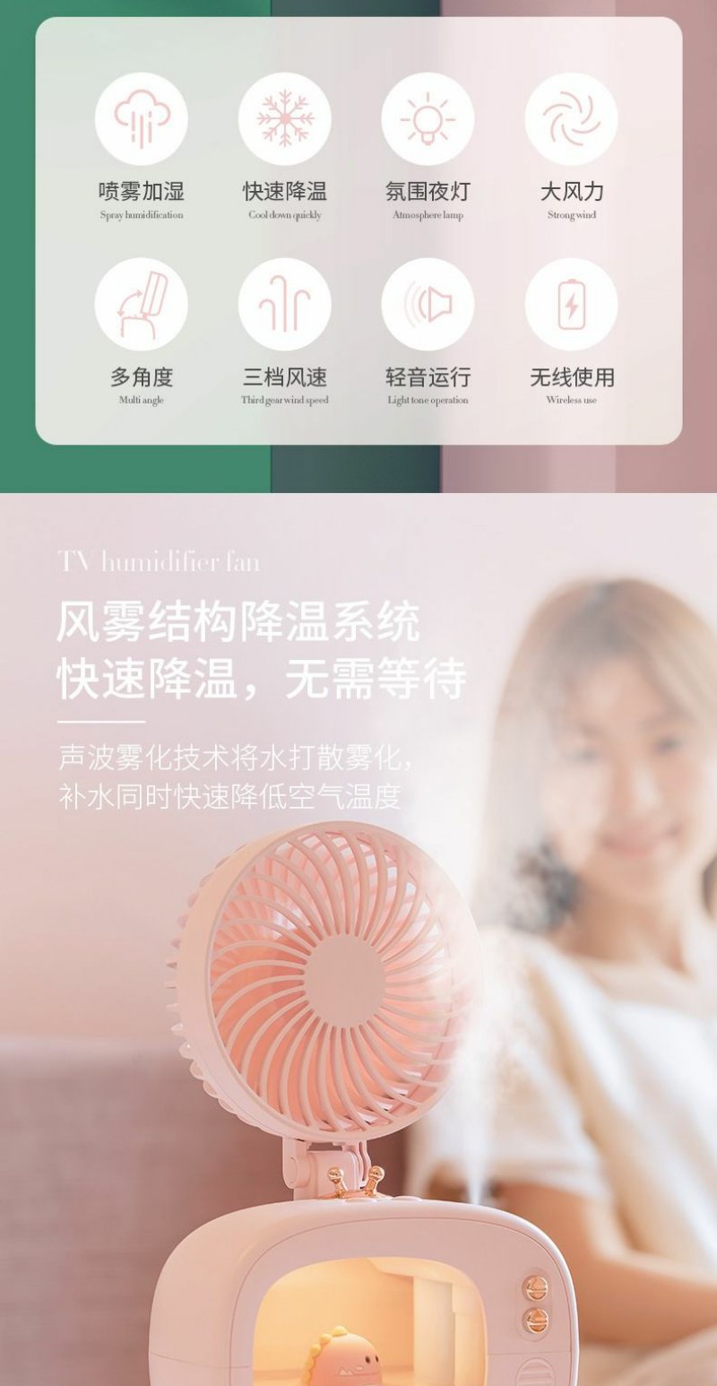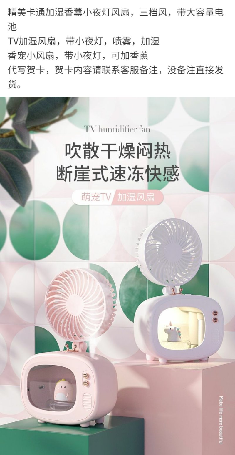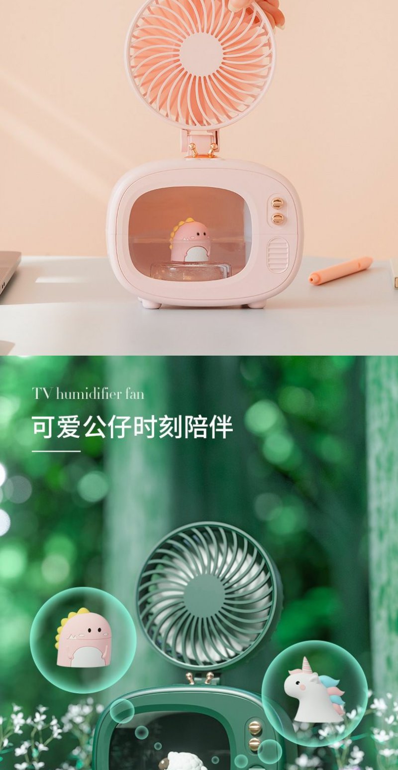 新品TV电视机喷雾香宠风扇加湿制冷usb可充电静音送女友生日礼物,