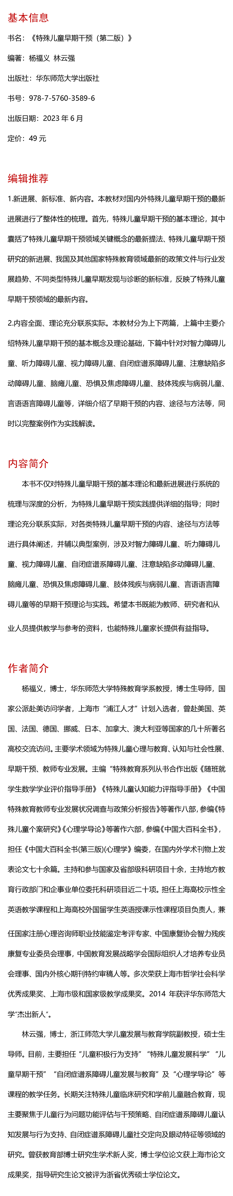 特殊儿童早期干预(第二版)杨福义 林云强编著