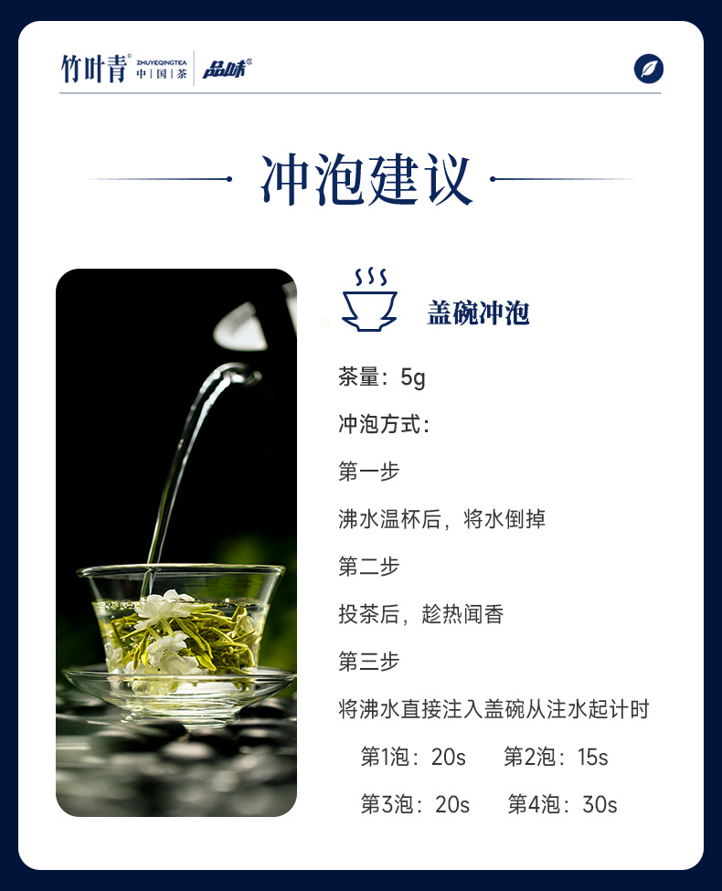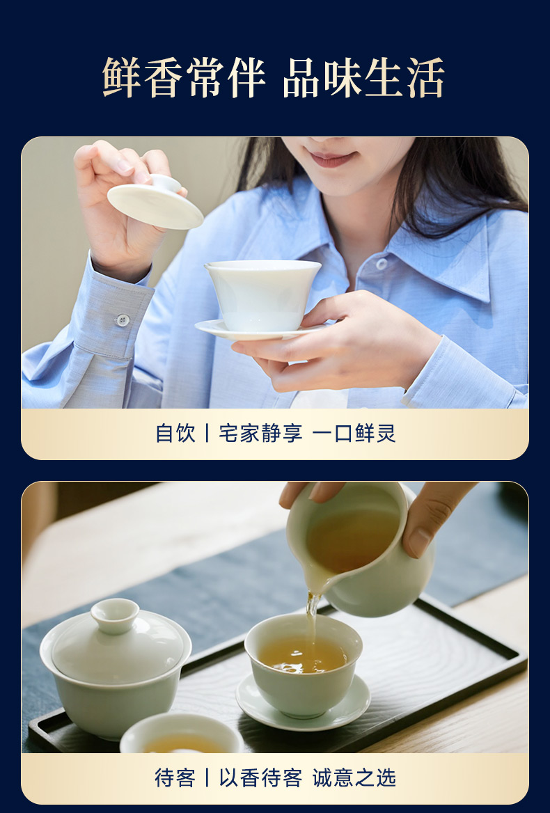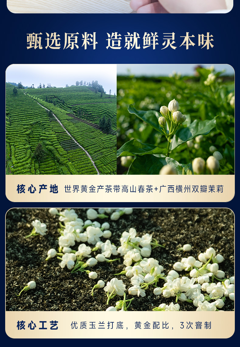 - 中国制茶大师徐金华(徐公)传承 古方制作技艺 开创新派茉莉花茶 精选峨眉高山明前春茶 配以广西横县双瓣茉莉 花与茶,黄金配比 时间酝酿,层层历练 花香与茶香交融 盖碗之间 仿佛茉莉花在舌尖绽放