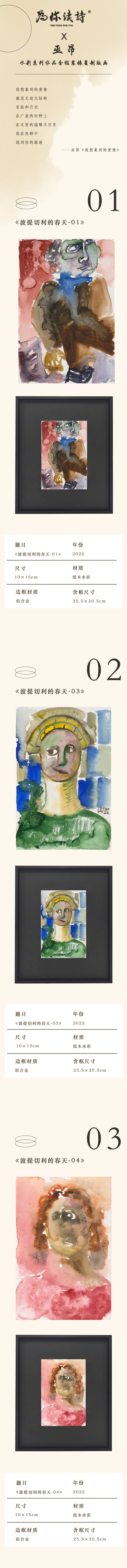 为你读诗 x 巫昂 水彩系列作品复制版画(含框)