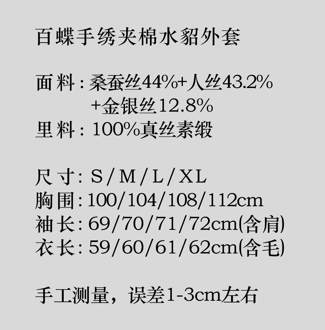 盛唐牡丹| 百蝶手绣夹棉水貂外套