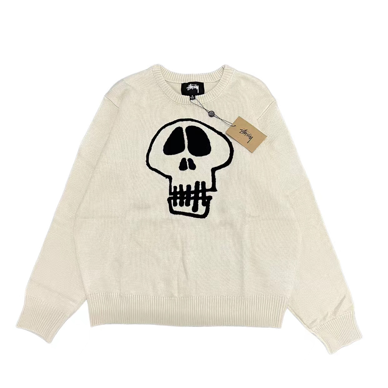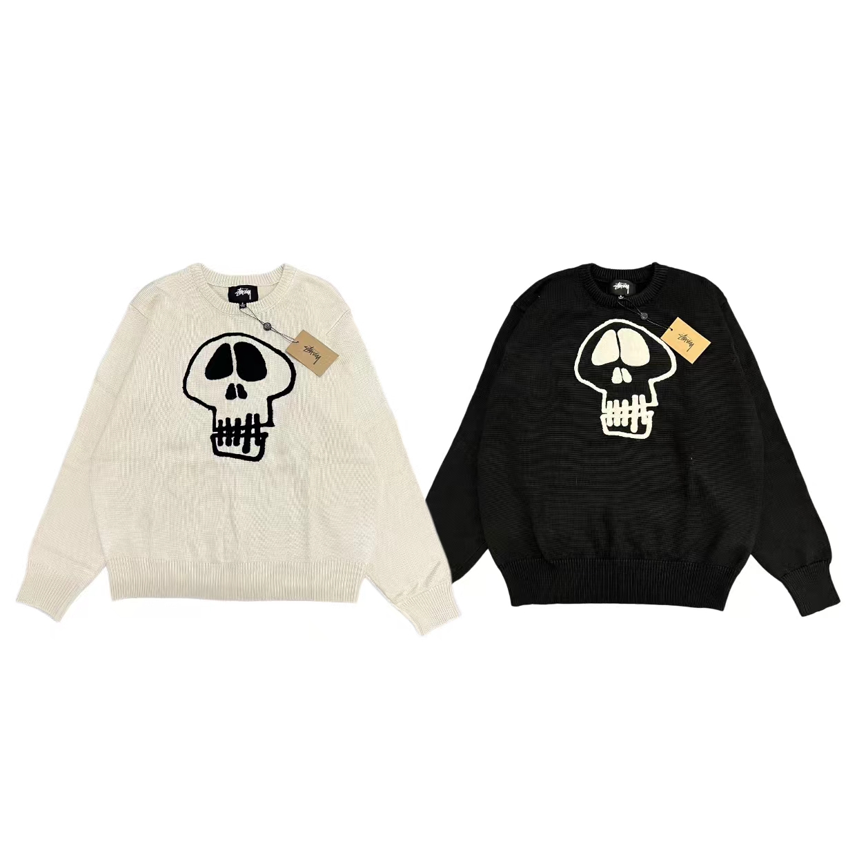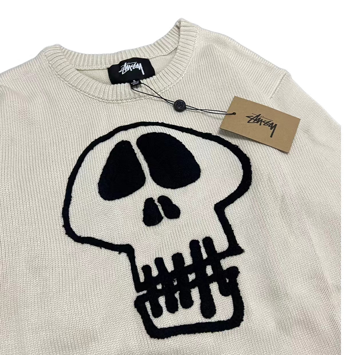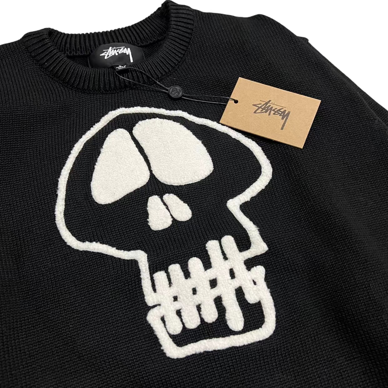 限定款骷髅毛巾绣提花情侣圆领针织毛衣 定制纯棉混纺针织面料 单件克重高达 600g 手感舒适不扎人