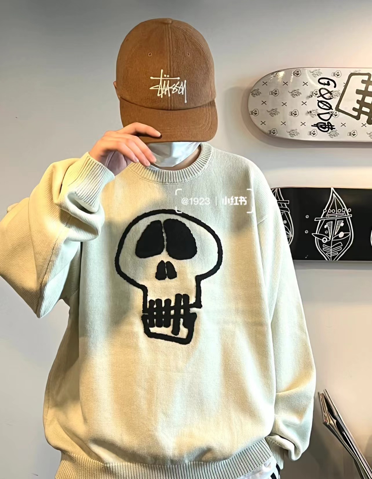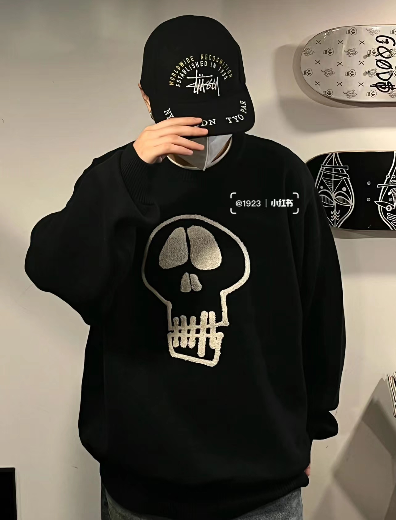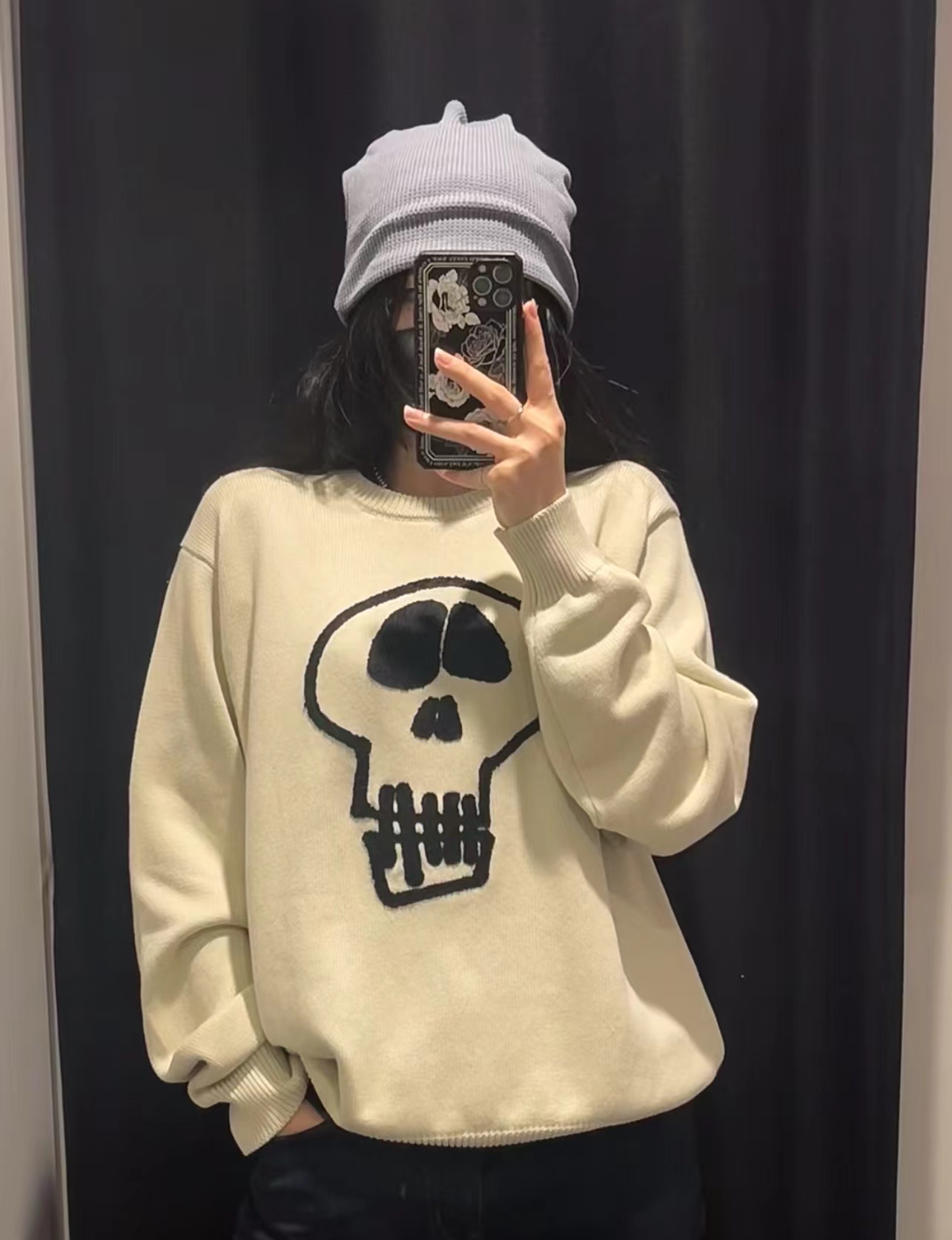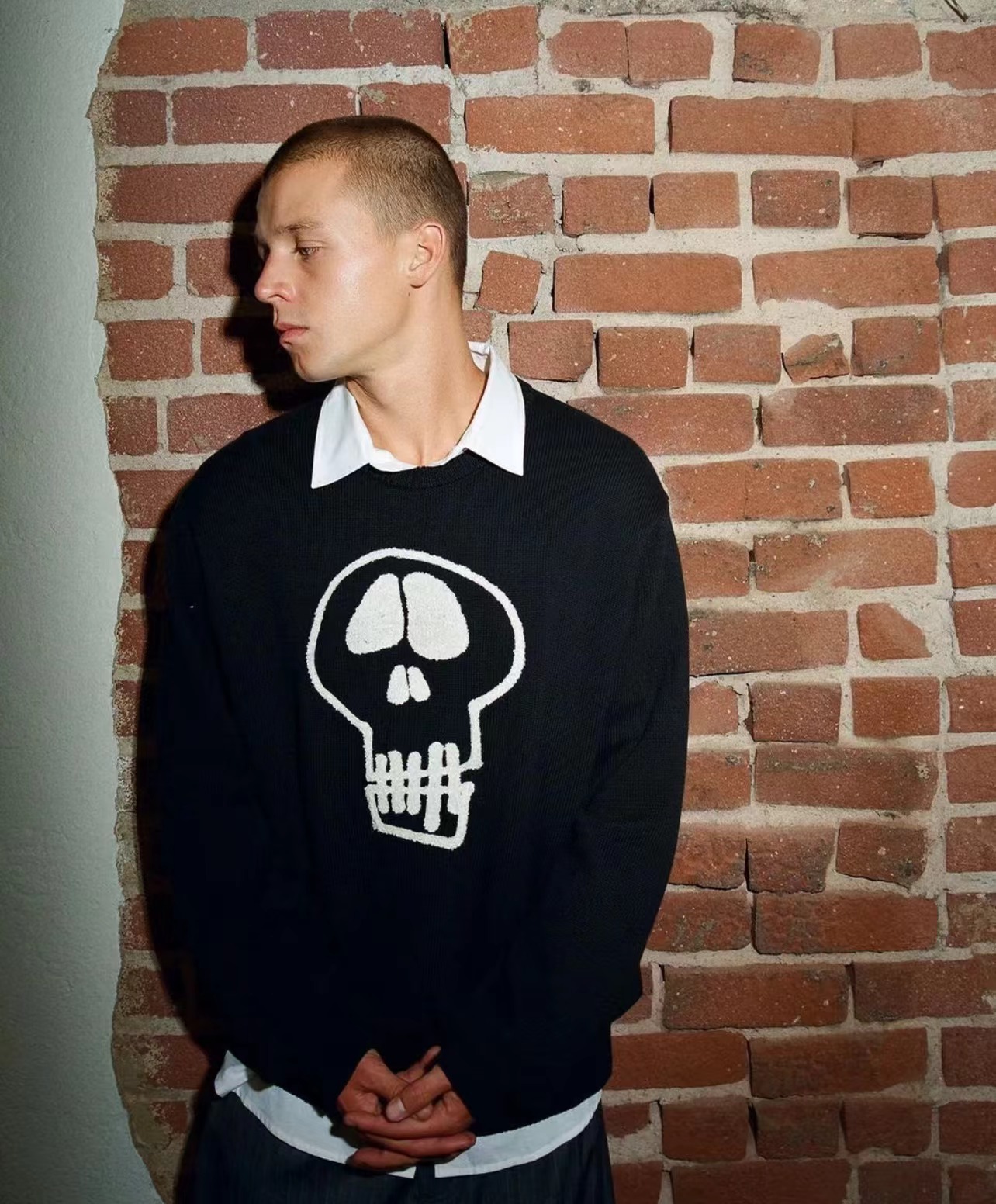限定款骷髅毛巾绣提花情侣圆领针织毛衣 定制纯棉混纺针织面料 单件克重高达 600g 手感舒适不扎人