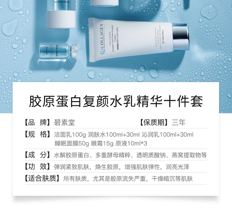 【美妆个护】护肤10件套碧素堂胶原蛋白复颜水乳精华十件套补水保湿