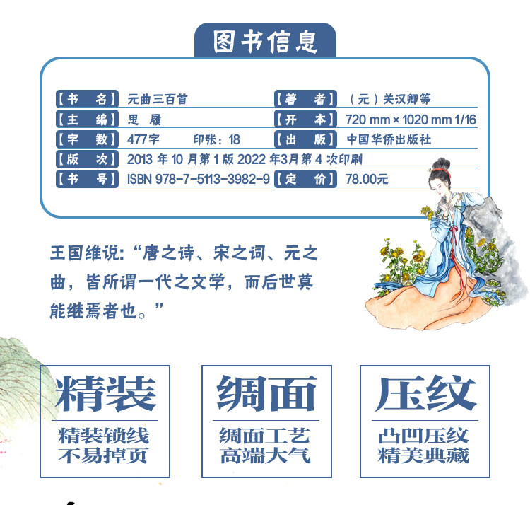 元曲三百首正版全集精装元曲鉴赏 唐诗宋词元曲全集中国古诗词大全300首典藏版诗词大会注释译文赏析文白对照传统文化国学启蒙书籍