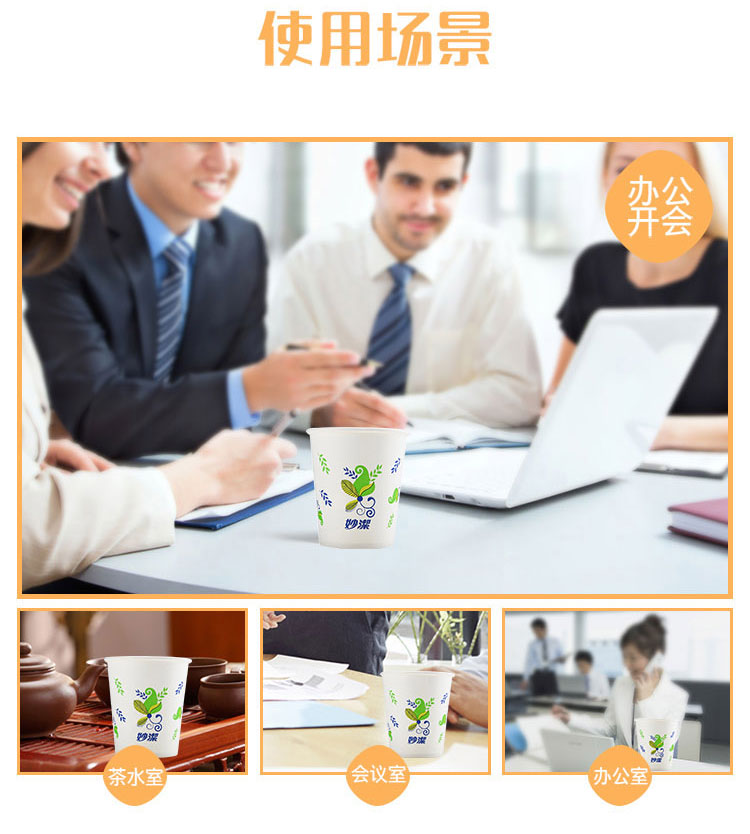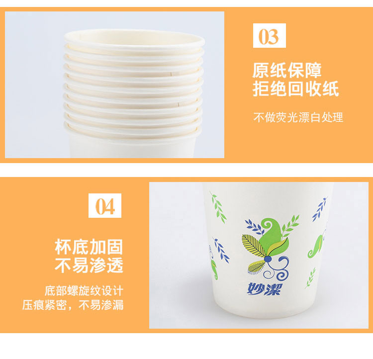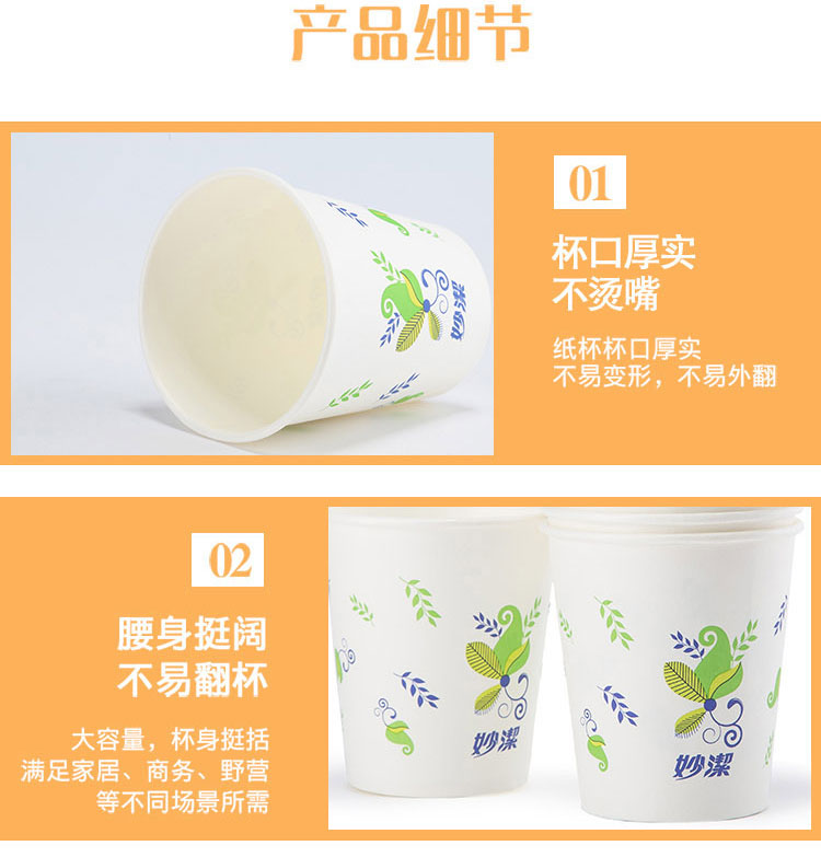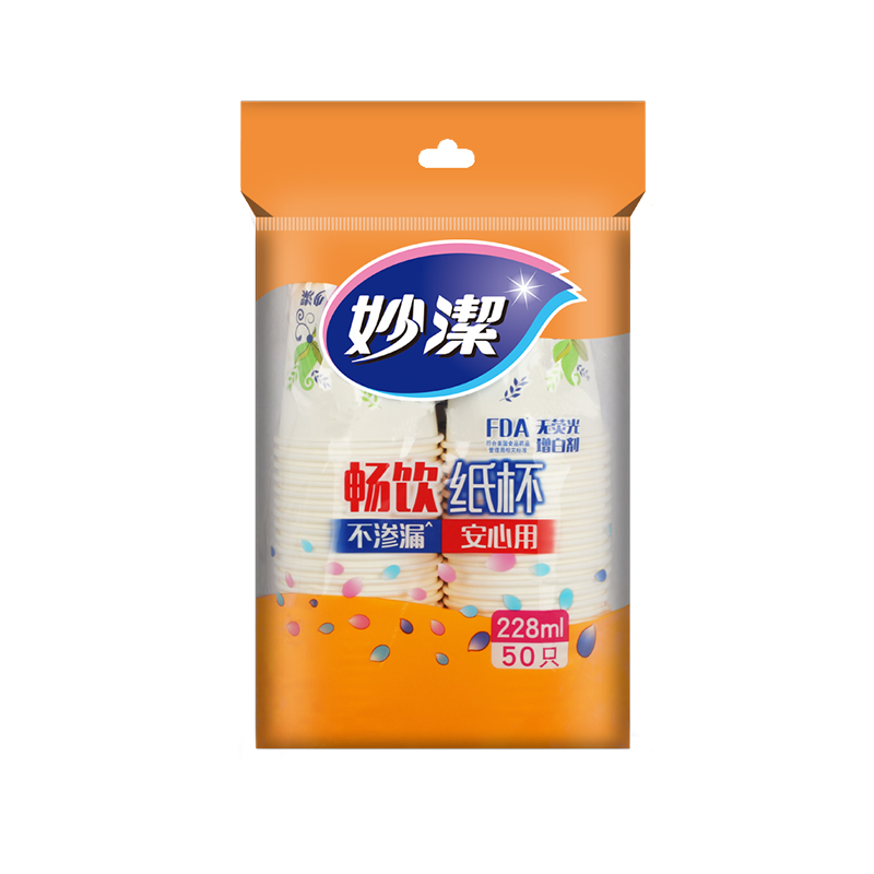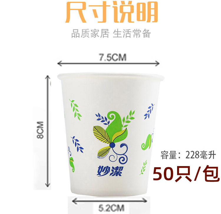 妙洁一次性杯子纸杯大号228ml50只装不渗漏 畅饮纸杯