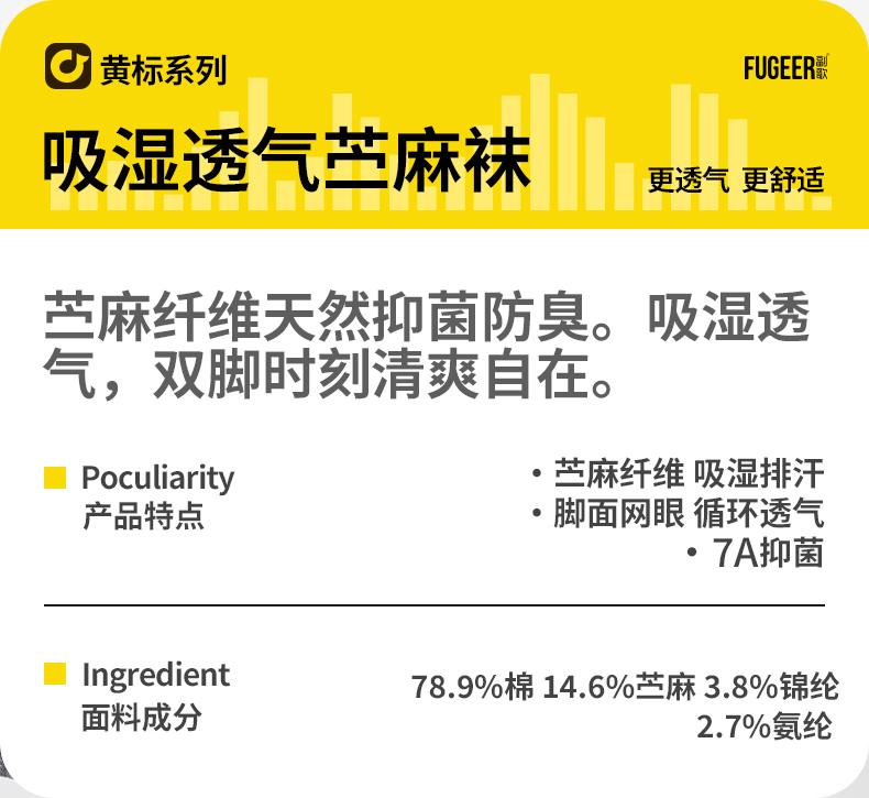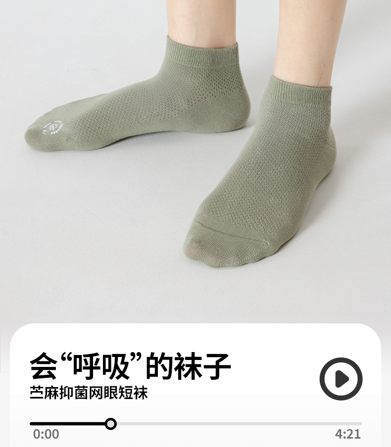 副歌男士夏天袜子薄款天然苎麻7A级抗菌防臭船袜网眼透气棉质短袜
