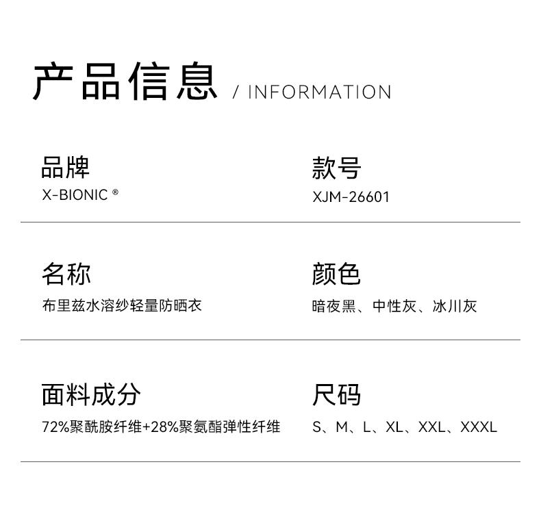 X-BIONIC 布里兹水溶纱轻量防晒衣男士夏季轻量舒适运动户外26601