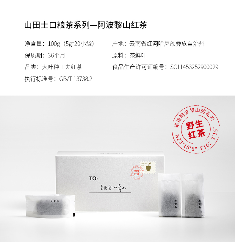 山田土口粮茶荒山红茶 野生古树滇红袋装红茶自饮伴手礼100g