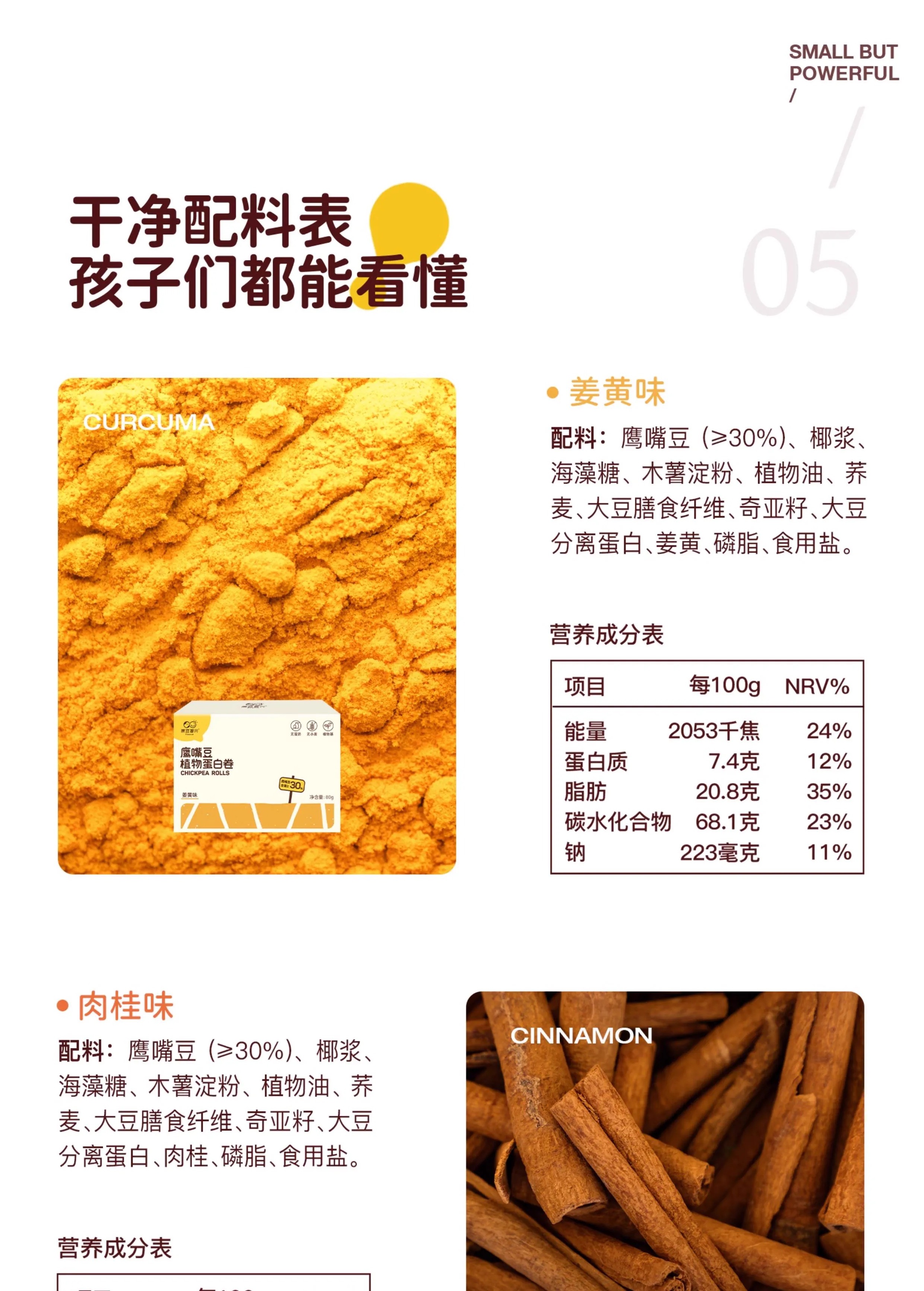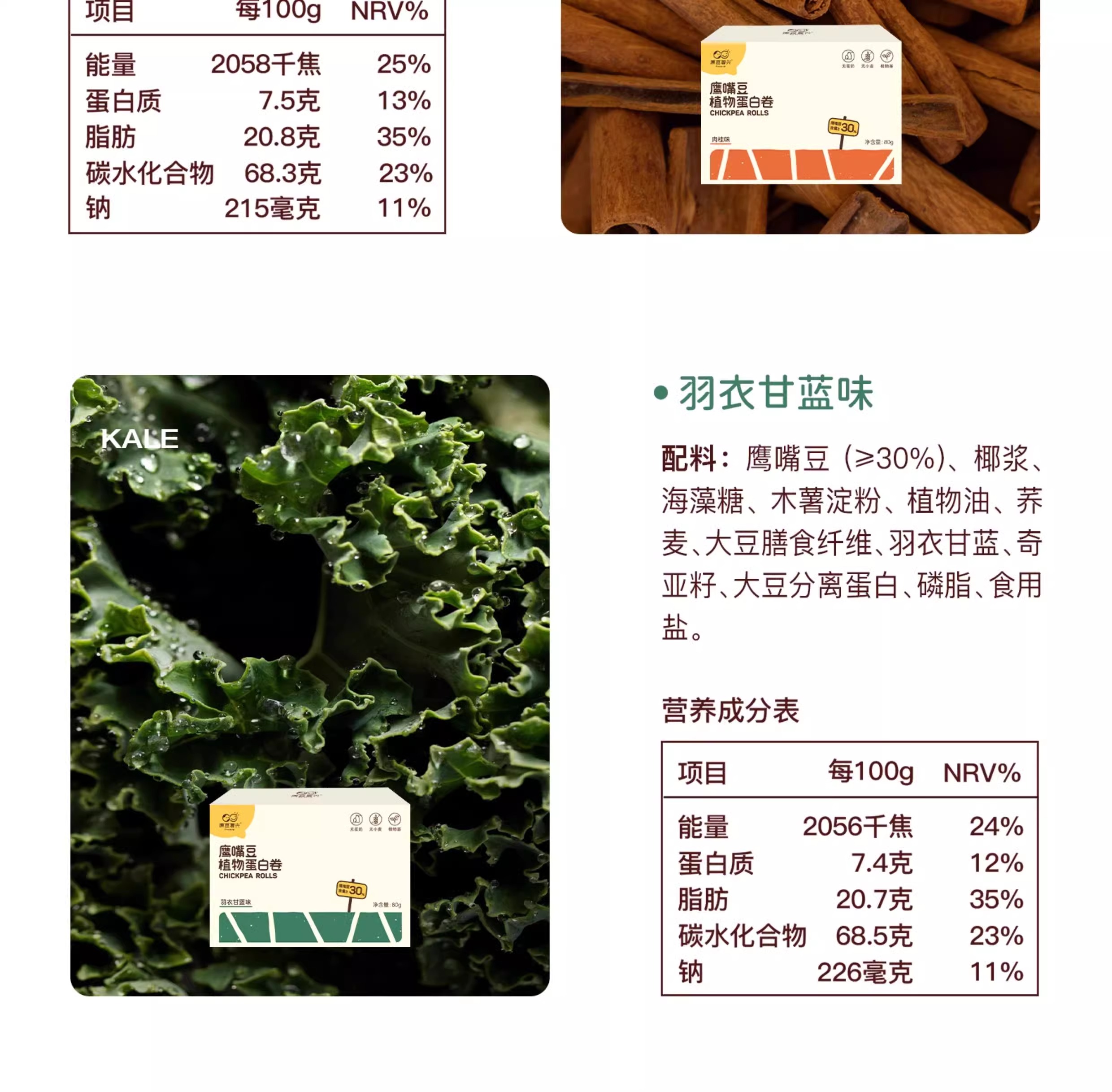 原豆复兴 鹰嘴豆植物蛋白卷 姜黄味/肉桂味/羽衣甘蓝味 80g/盒