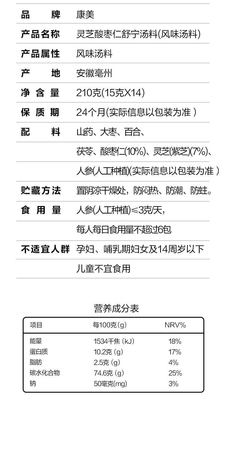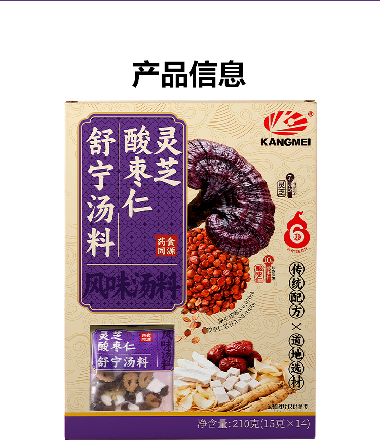 【山姆同款】康美灵芝酸枣仁舒宁汤料 210g 传统配方道地选材 15g*14包