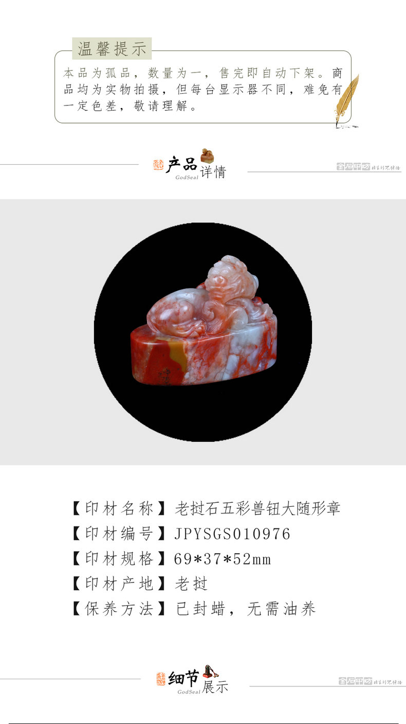 金石印坊 老挝石五彩兽钮大随形章 69*37*52mm JPYSGS010976