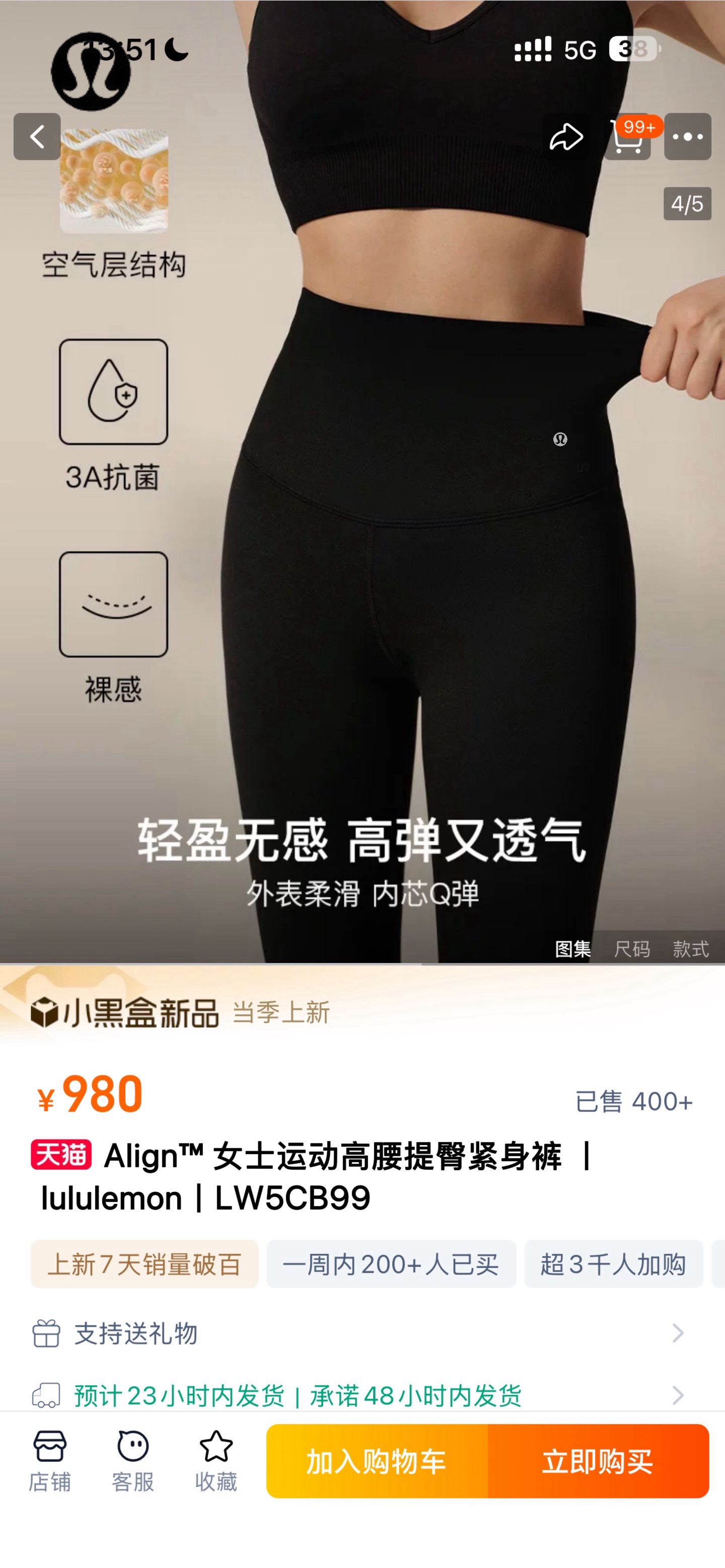 品名:B99款lulu提臀鲨鱼裤
