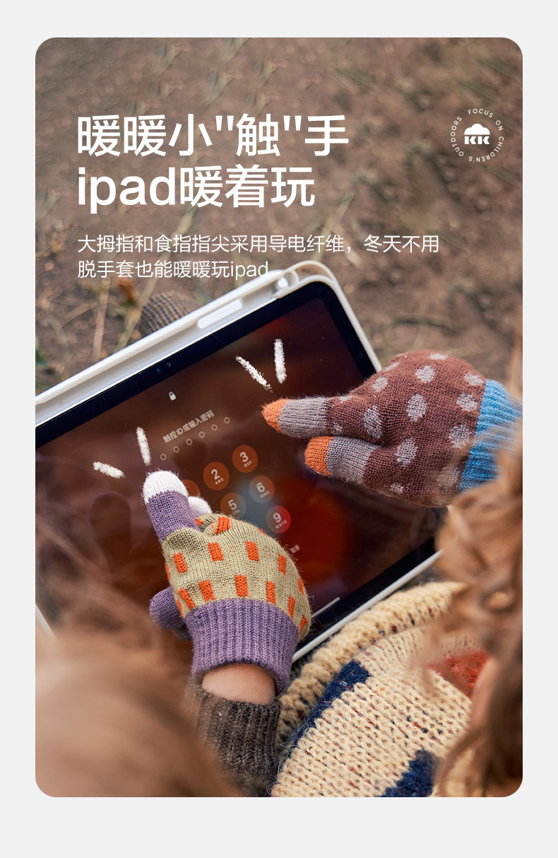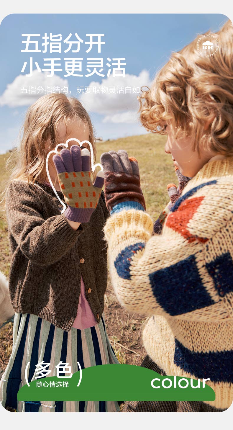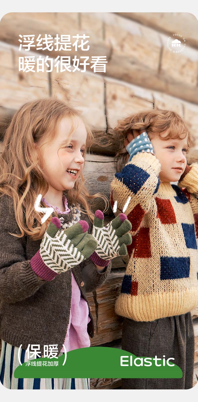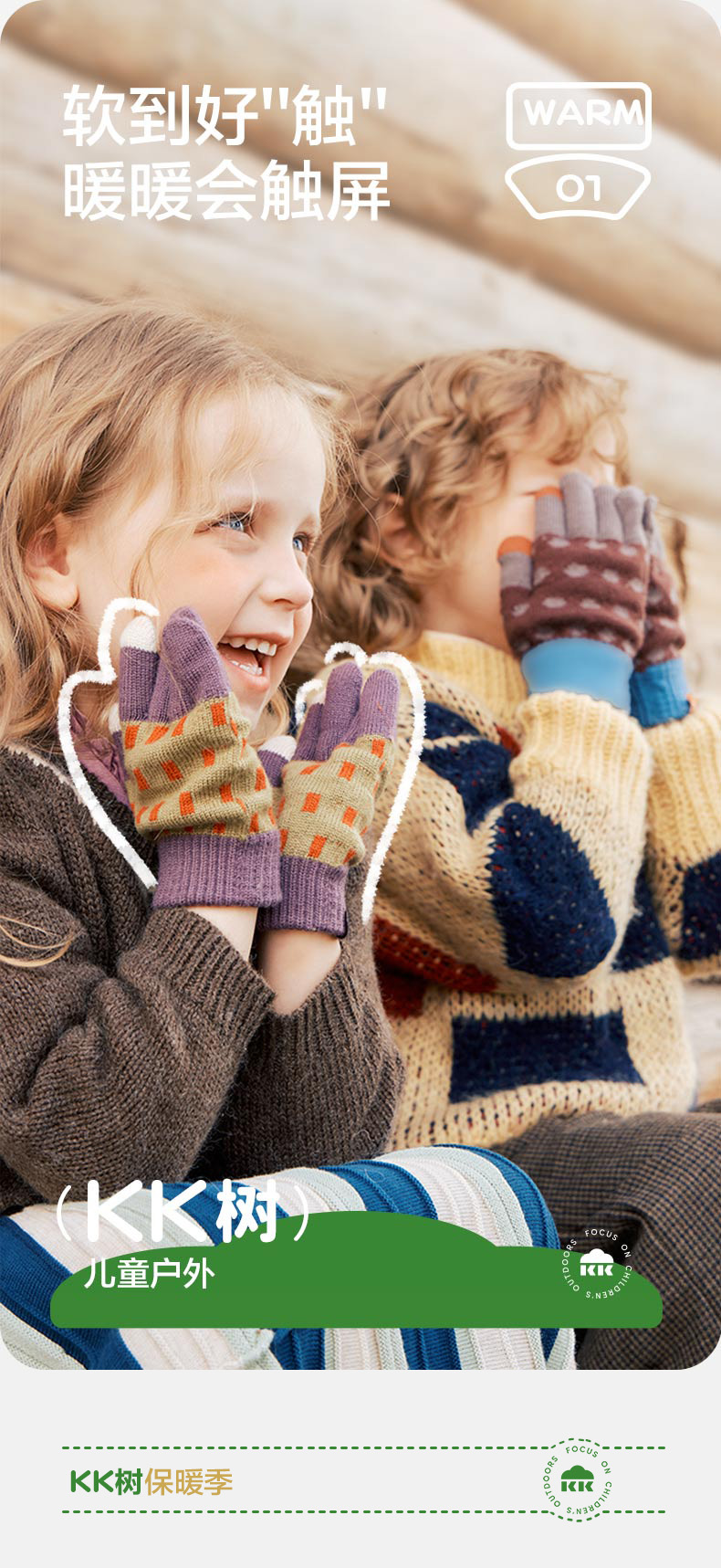 <有书独家>KK树宝宝手套儿童冬天五指保暖可触屏男童女孩小学生写字专用A类糯米米五指手套