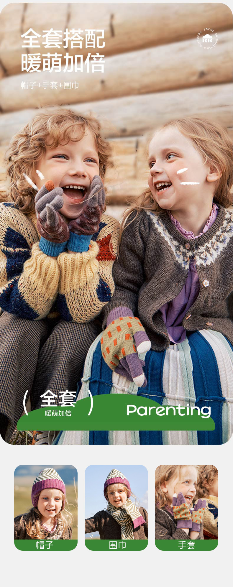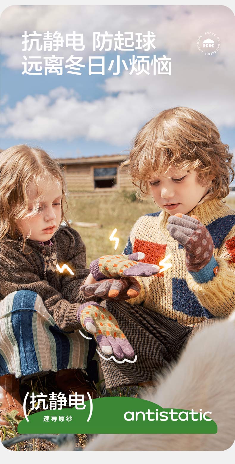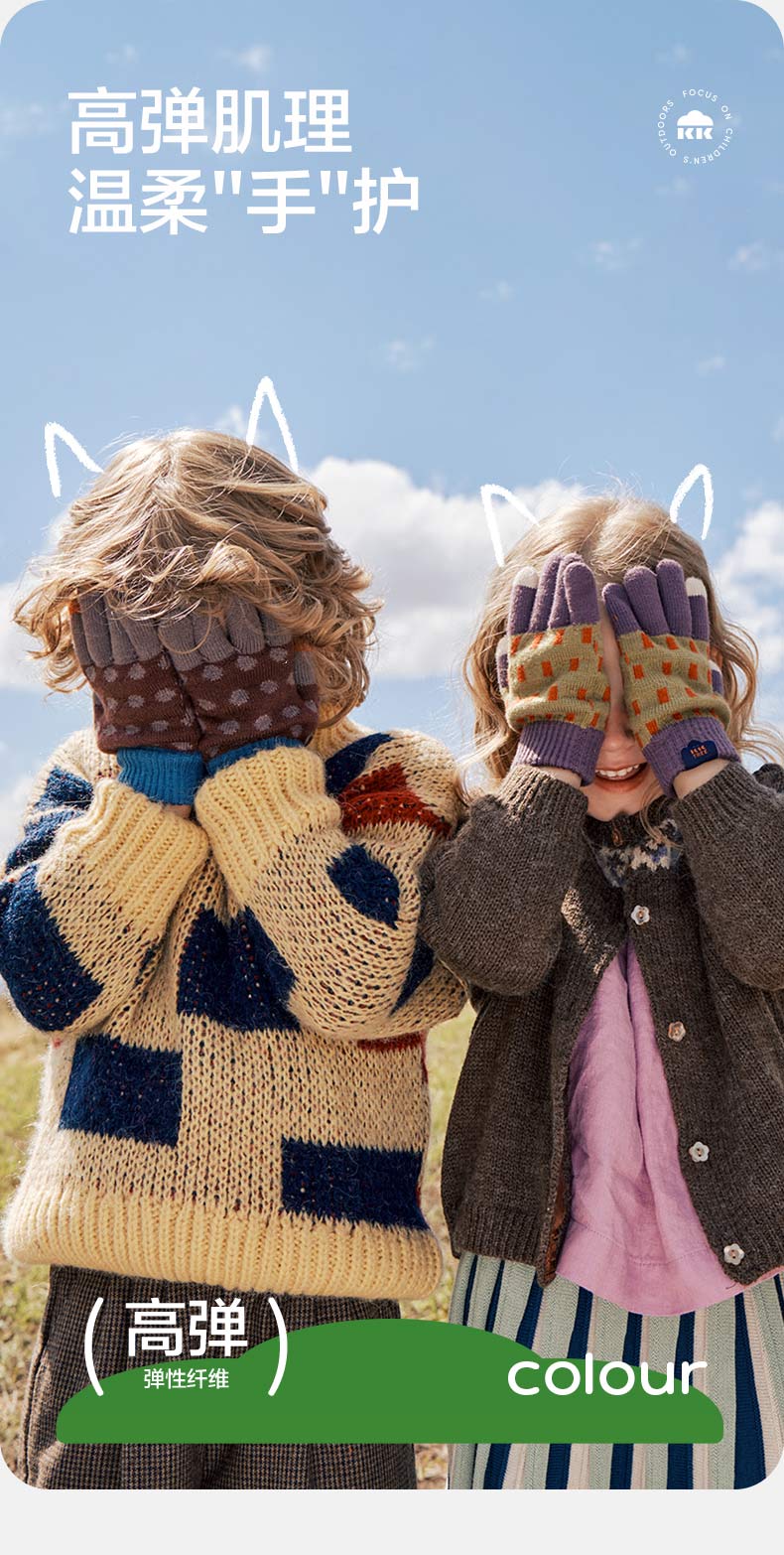 <有书独家>KK树宝宝手套儿童冬天五指保暖可触屏男童女孩小学生写字专用A类糯米米五指手套