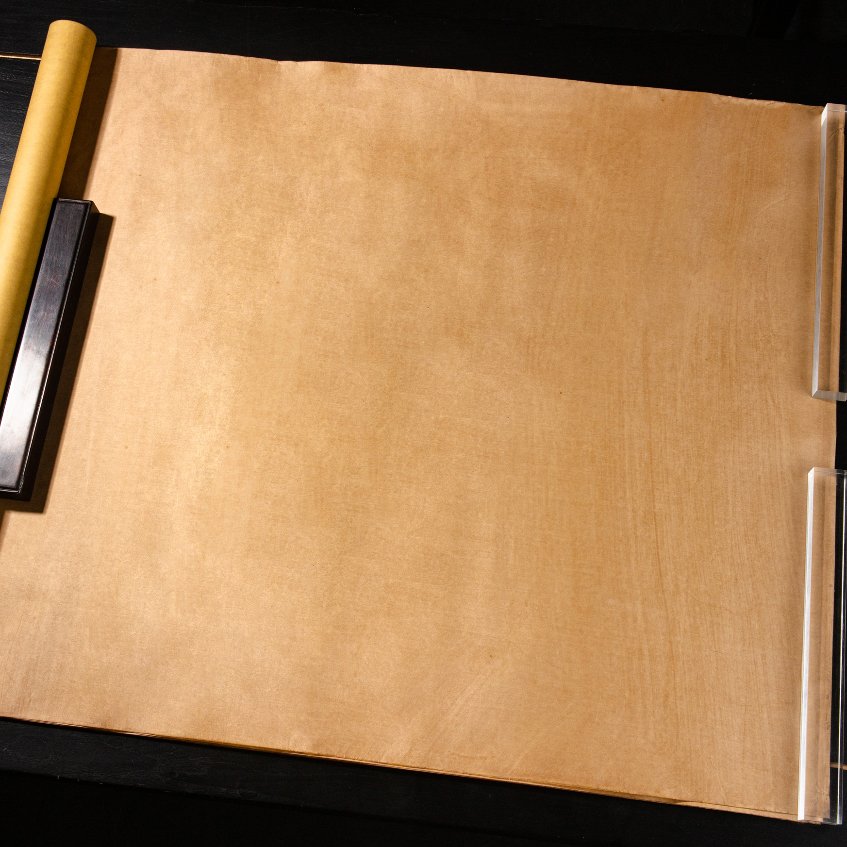 70-80年代素色四尺绢本,质地精细,背后托有仿古宣纸,整体气息古旧,是书画创作之佳品。