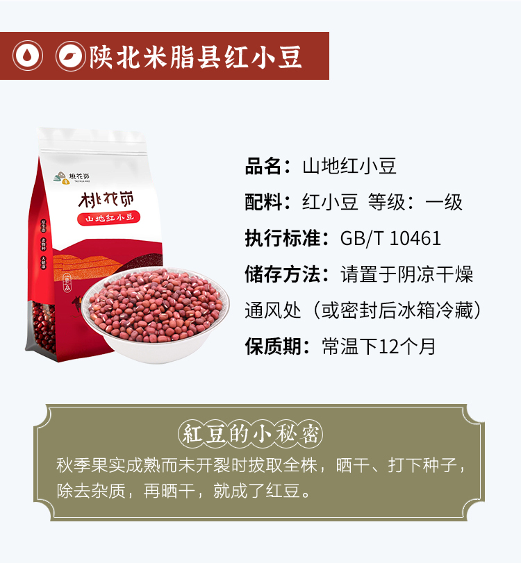 【五谷杂粮】桃花峁陕西米脂山地红小豆 500g/袋 农家五谷杂粮 粗粮塑料袋装