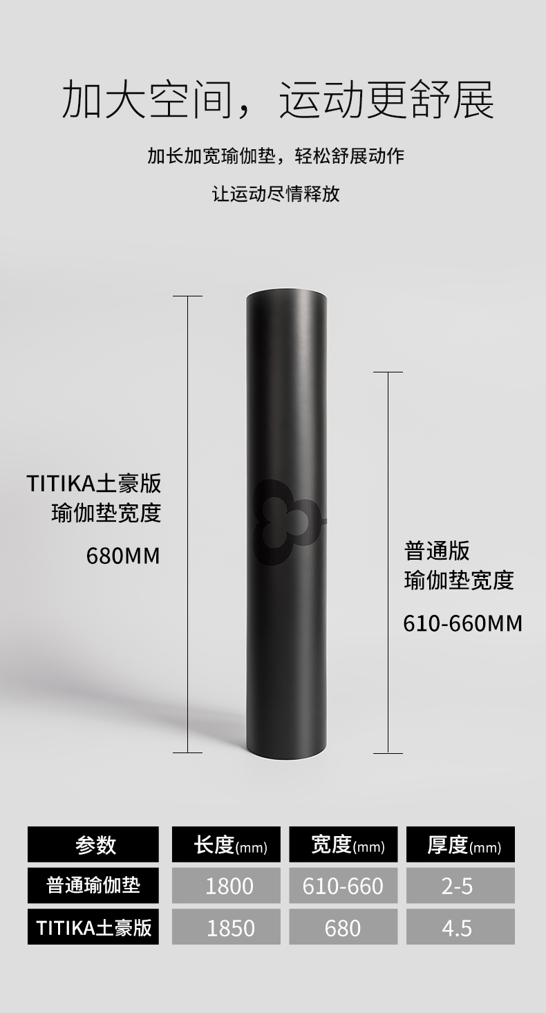TITIKA爱宠瑜伽垫4.5mm天然橡胶健身专业加宽防滑瑜珈垫7424