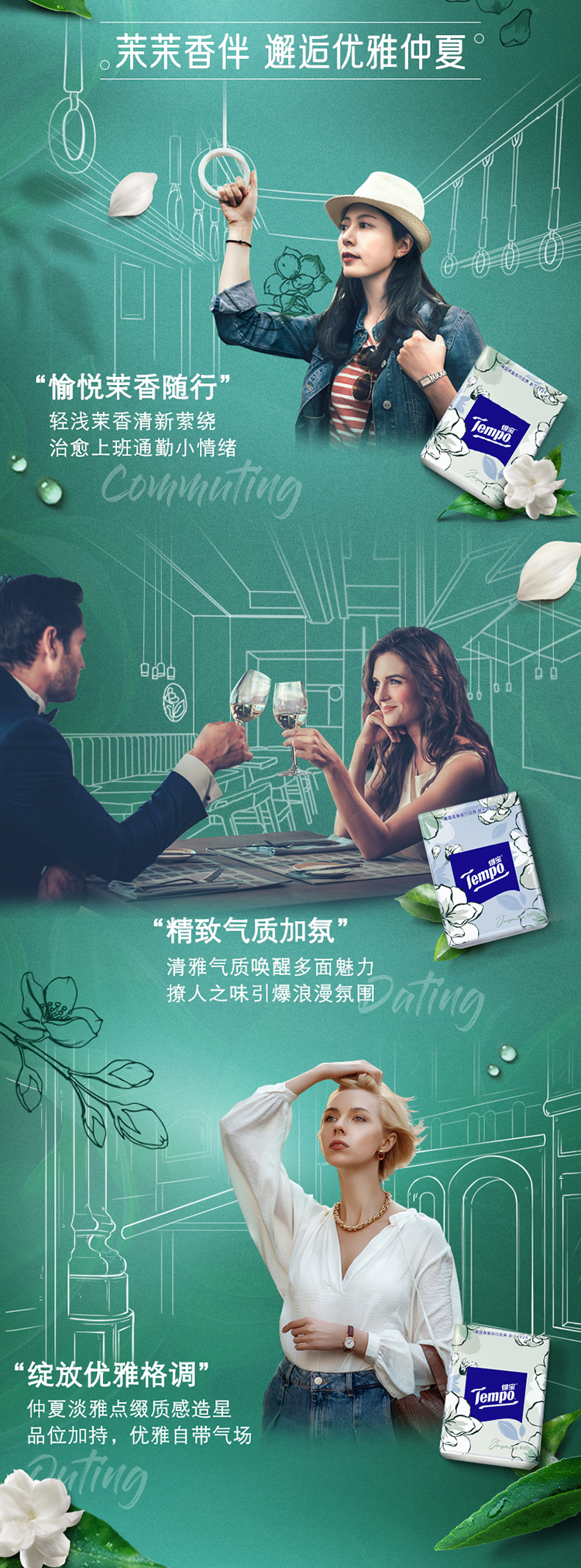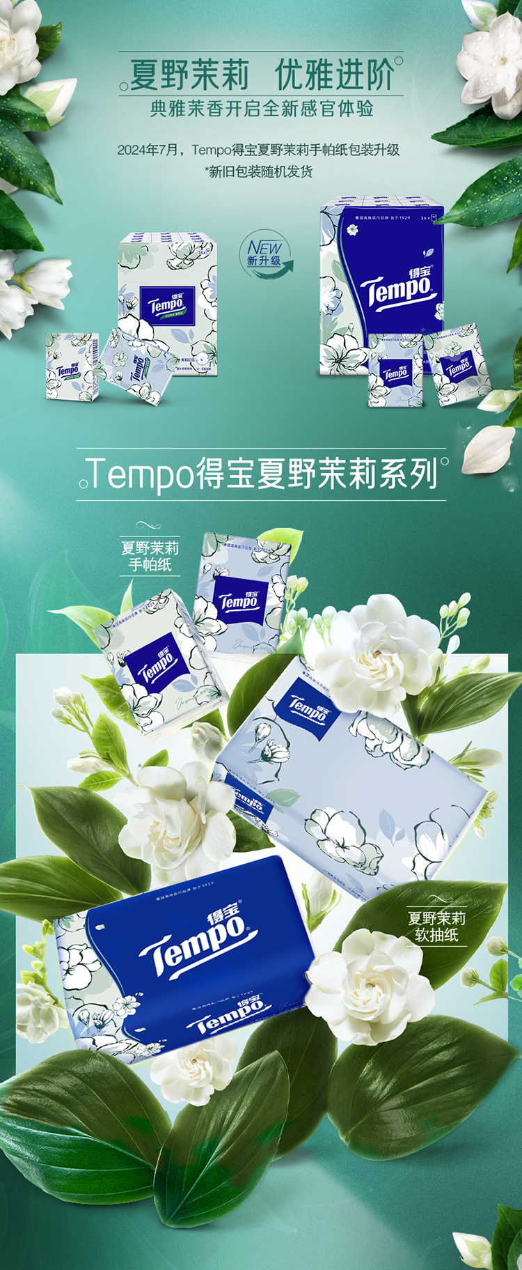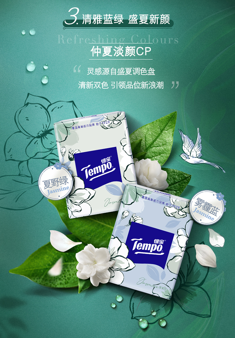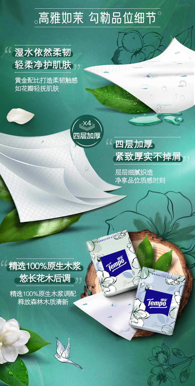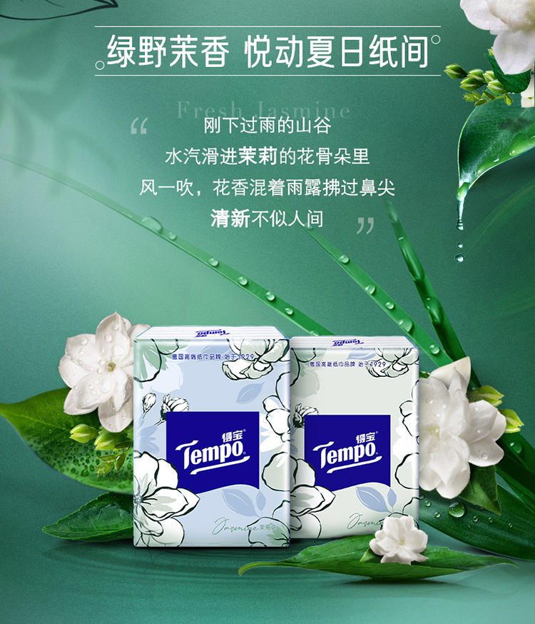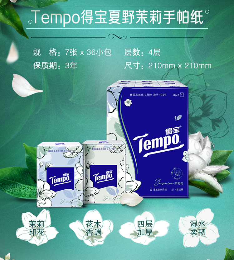 得宝(Tempo) 纸巾茉莉花味手帕纸4层36包 纸巾小包便携装手帕纸餐巾纸(新旧包装随机发货/旧包装无印花)