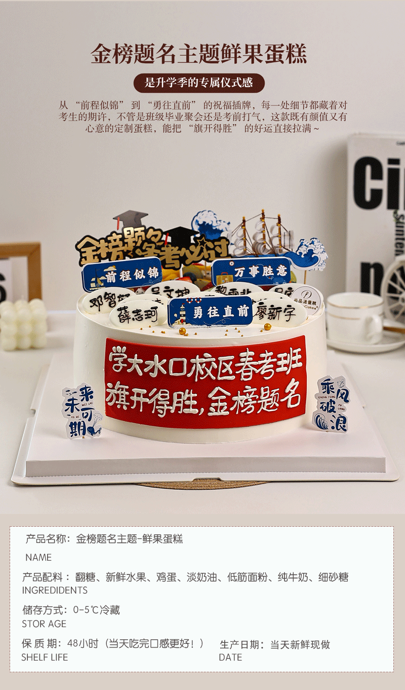 「金榜题名主题鲜果蛋糕」,是升学季的专属仪式感【惠州】