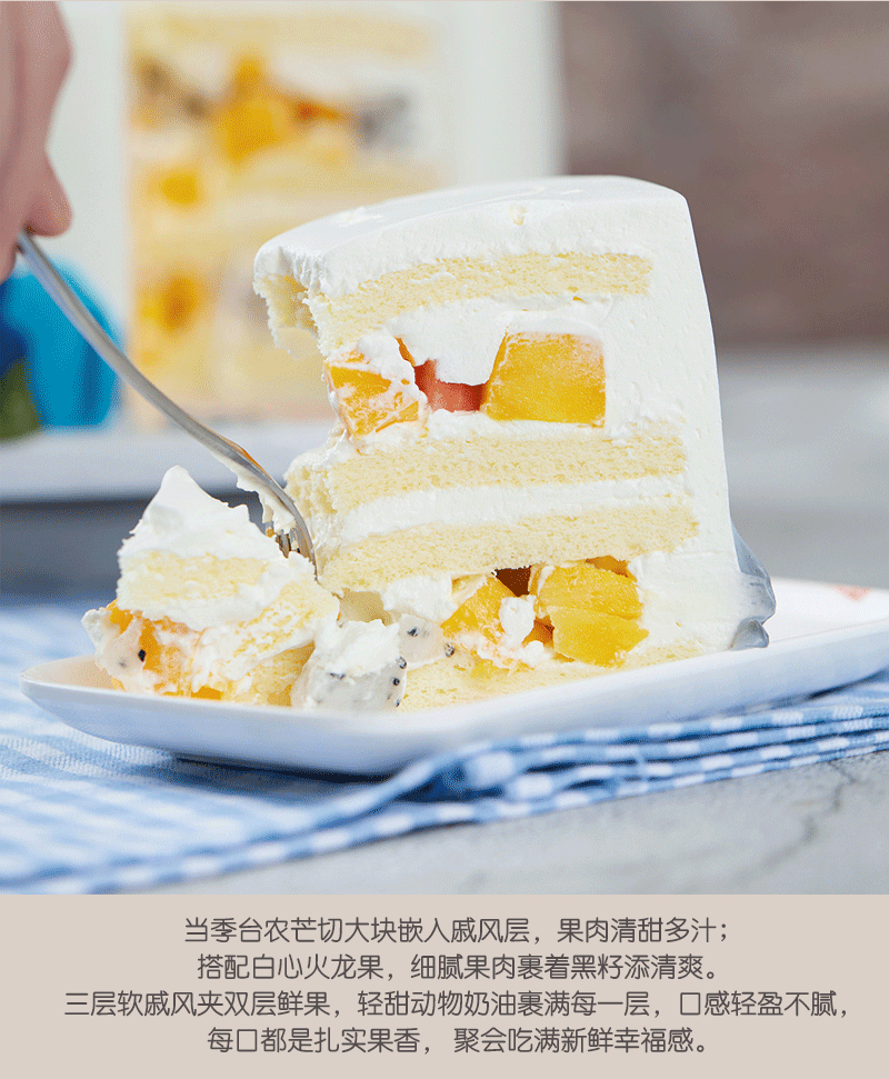 我们坚持当日接单、新鲜现做,拒绝罐头果肉与植物奶油,让每一口都保留食材本真的鲜活清甜。生活需要一点甜,我们的蛋糕不只是一份甜品,更是传递快乐的仪式感,为你带来视觉与味蕾的双重满足~