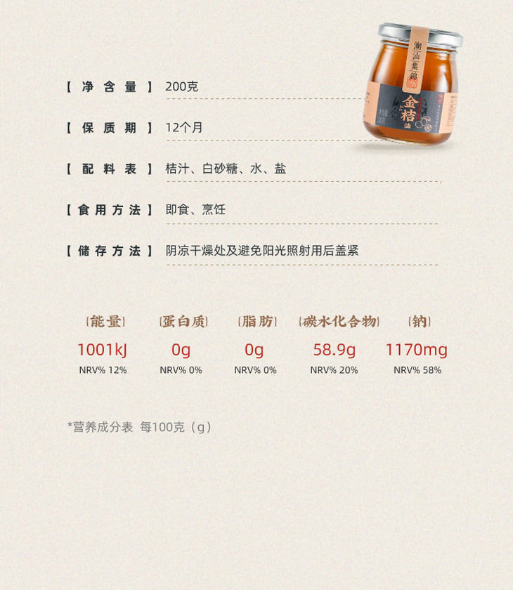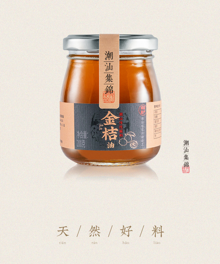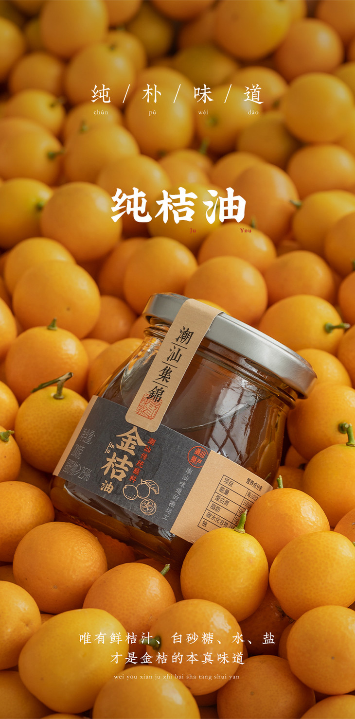 金桔油真的太有特色了!制作工艺源于传统,用的是优质的成熟桔子,饱满多汁的桔子被榨汁后,与白砂糖、水和盐混合,经过长时间的熬煮和腌制,最终形成色泽深黄、胶质透明的桔油。整个过程不添加任何人工色素、增稠剂、防腐剂或甜味剂,保留了桔子的天然果香和清甜口感。