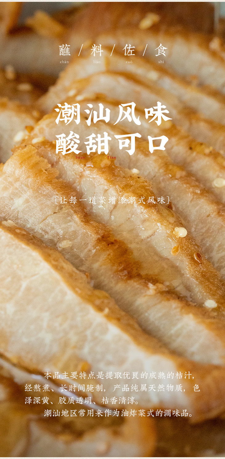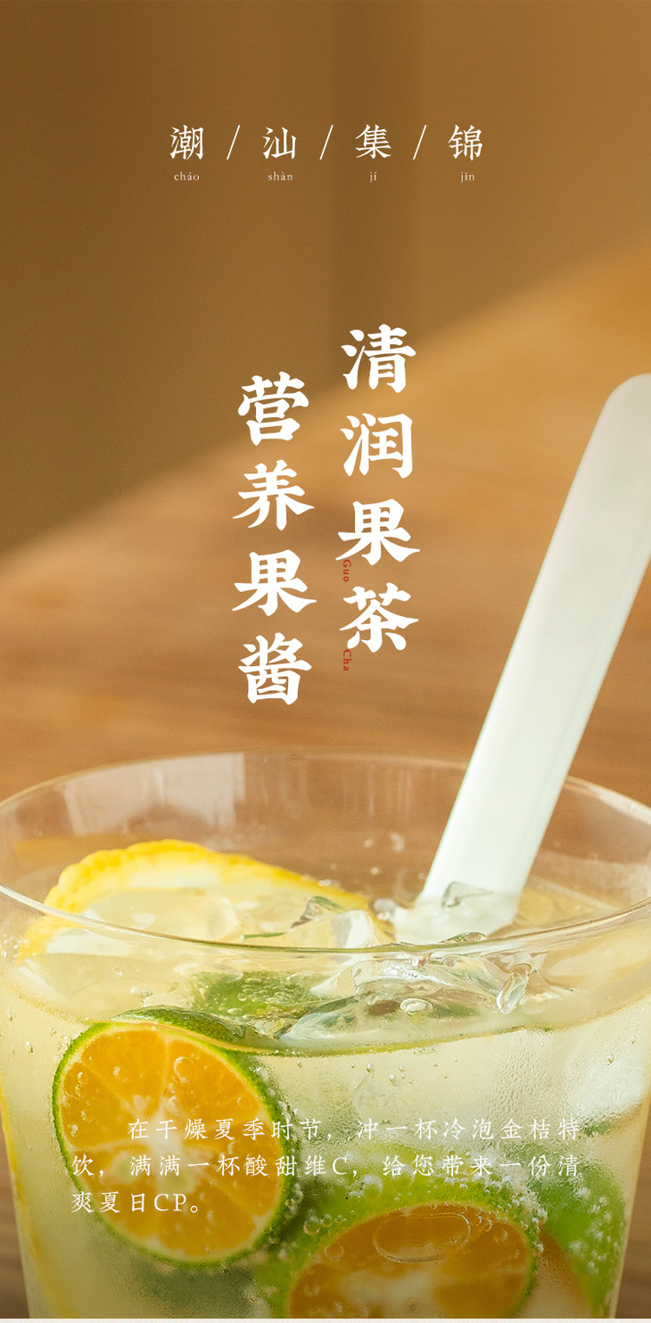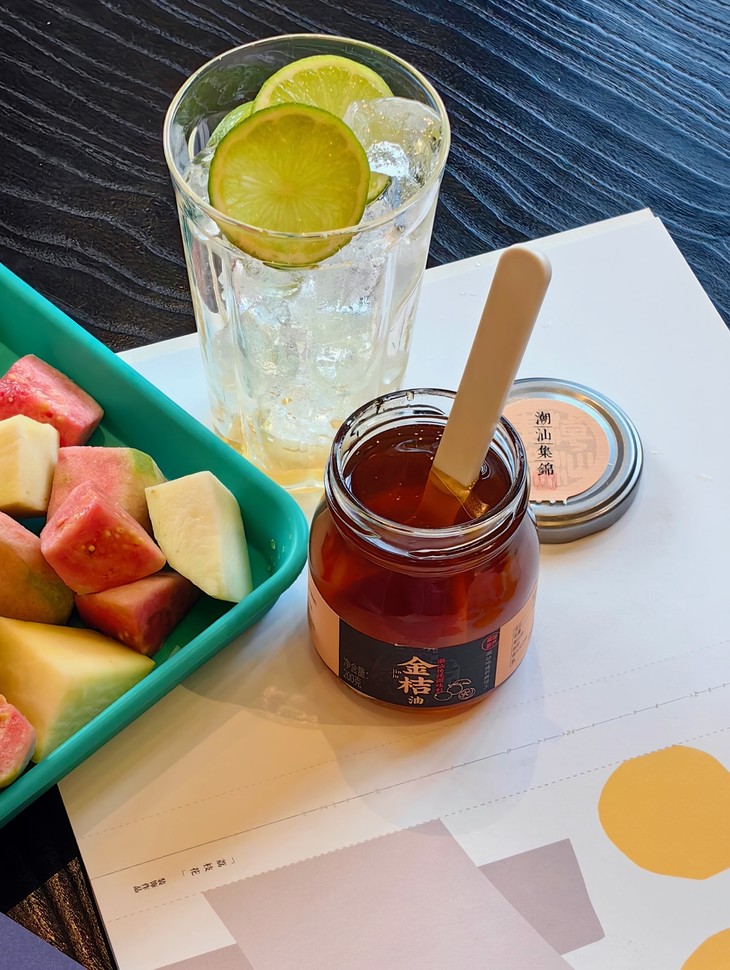 金桔油不仅是潮汕传统油炸菜式的经典搭配,更是现代厨房的百搭调味品,特别特别推荐做特饮,太好喝了!来杯冰块,切2片柠檬,挖一勺桔油,再兑入苏打水或者纯净水,一杯好喝的金桔柠檬饮就完成了,完全不输外面的饮品店,一定一定要试试!平时吃咸鸭、烤鸭、烤肉和炸货,也得来点桔油,清爽解腻,非常不错!还可以用来腌制肉类、凉拌蔬菜,这一抹独特的酸甜风味,真的是一定要尝一尝!