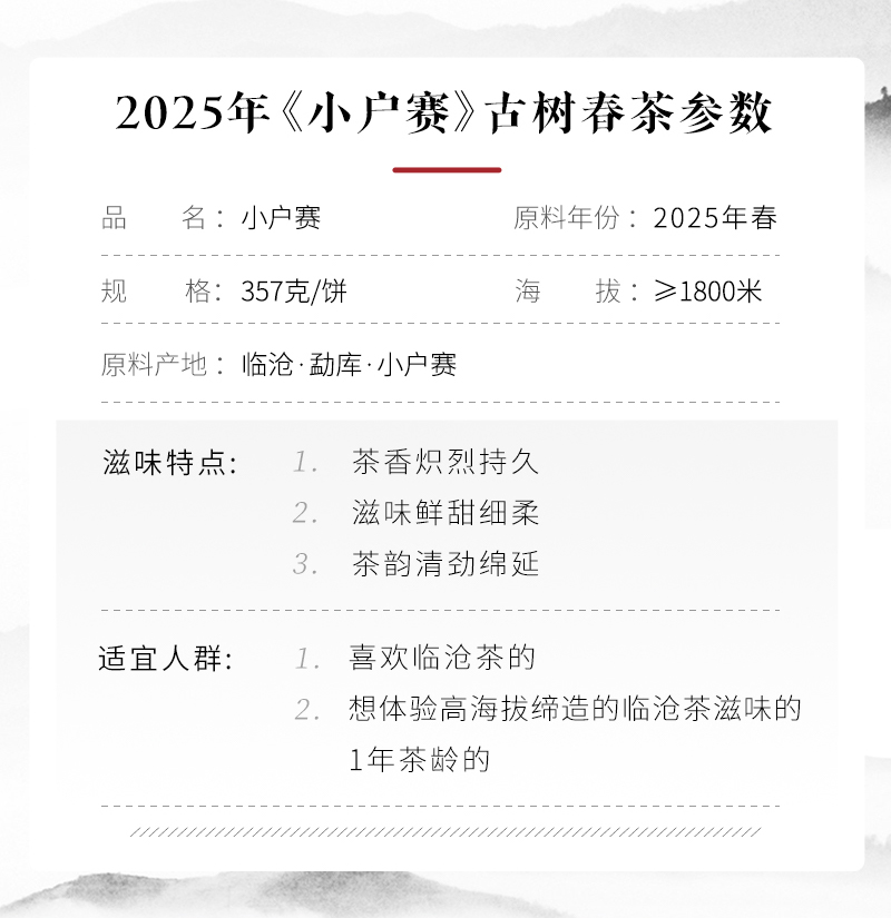 【买7送1】2025《小户赛》古树纯料春茶 357克/饼 生茶